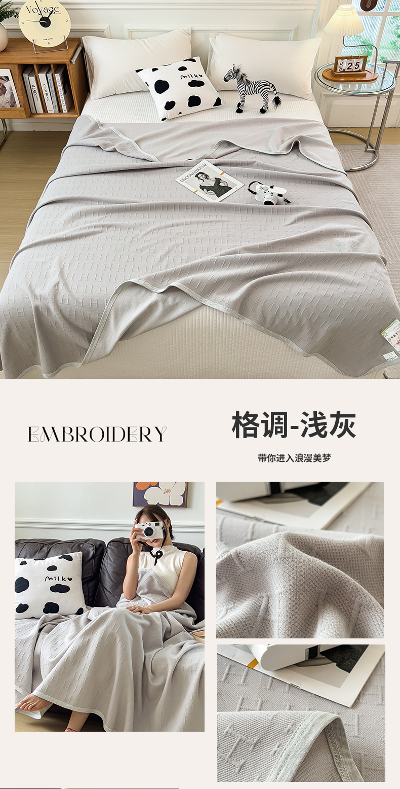 (总)云恋家纺 2026新款空气提花纯棉三层纱夏被全棉学生午睡被薄款床单沙发盖毯办公室披肩毯,方格-本白,方格-灰卡,方格-咖色,格调-豆沙,格调-浅灰,格调-雅白,菱形格-粉玉,方格-橄榄绿,菱形格-奶黄,菱形格-奶雾灰,菱形格-浅蓝