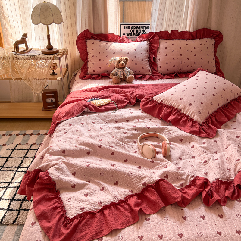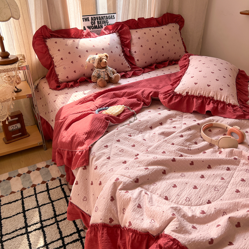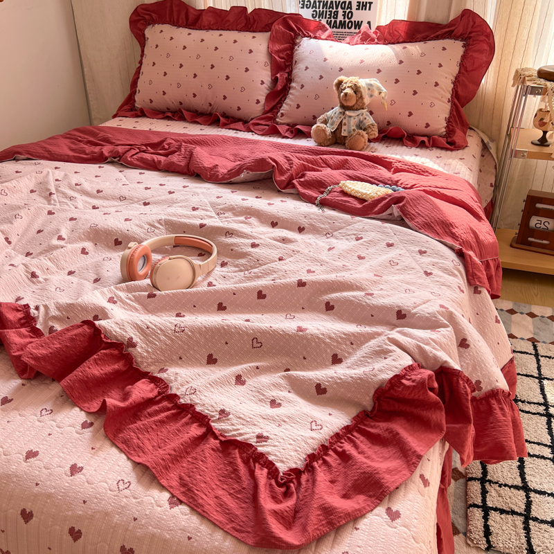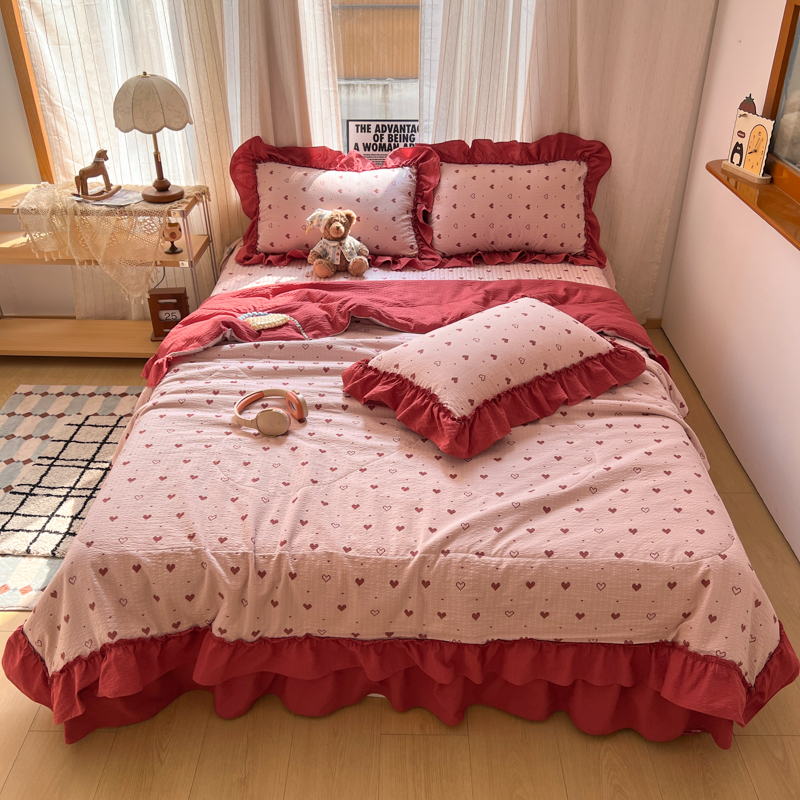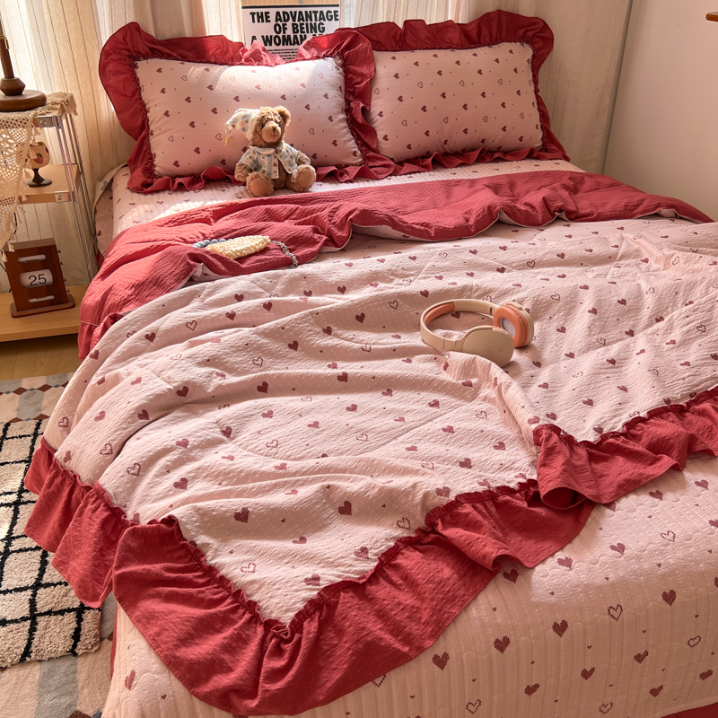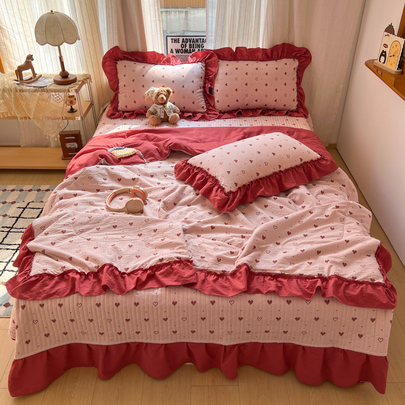 欧尚 2026新款床盖款花边夏被四件套 朦胧粉红