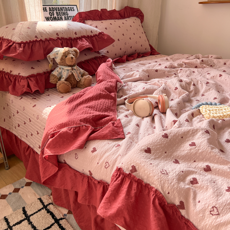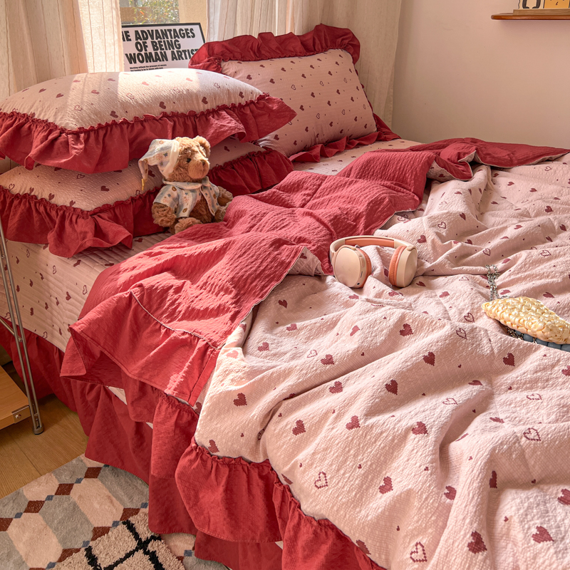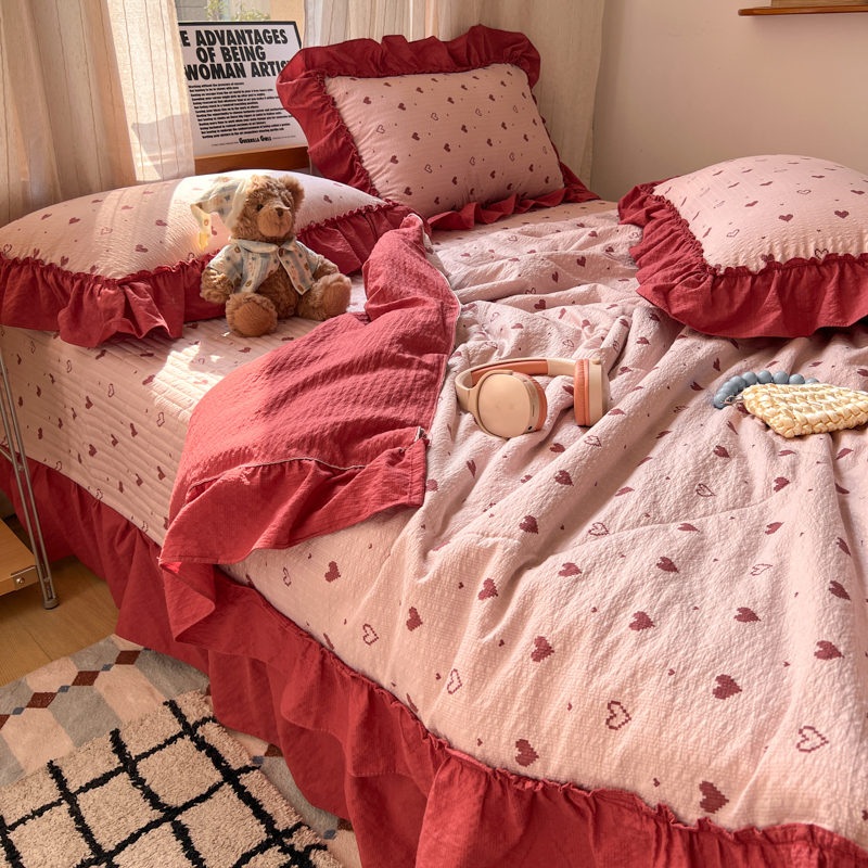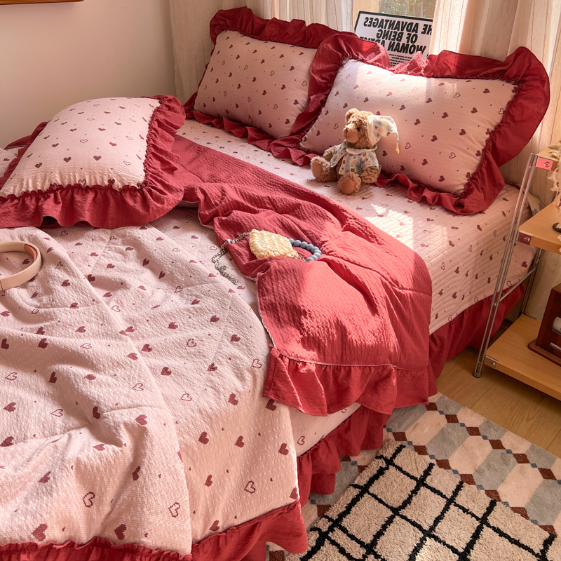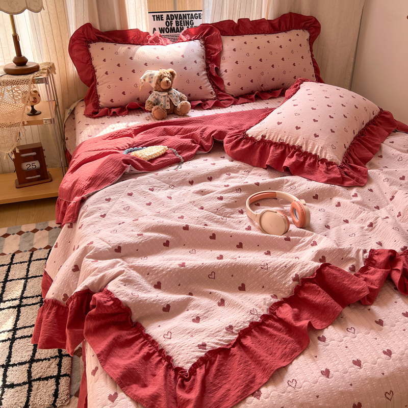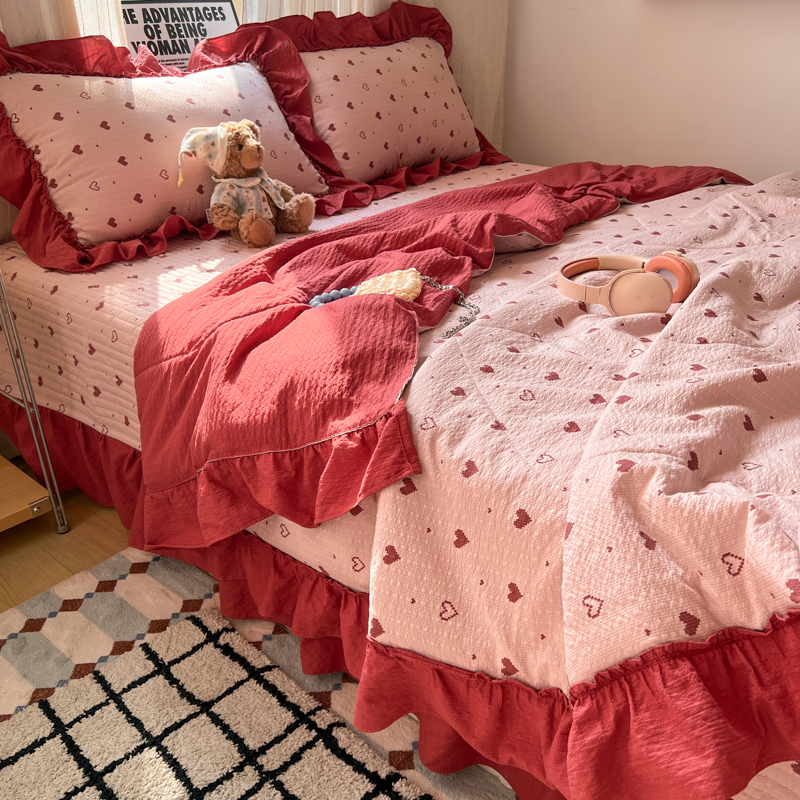 欧尚 2026新款床盖款花边夏被四件套 朦胧粉红