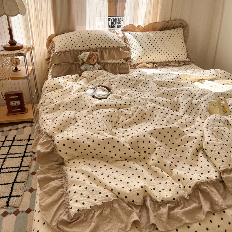 商品名称:欧尚 2026新款床盖款花边夏被四件套 棕星点
