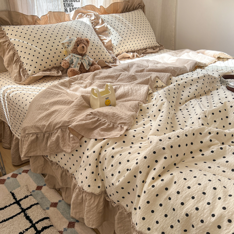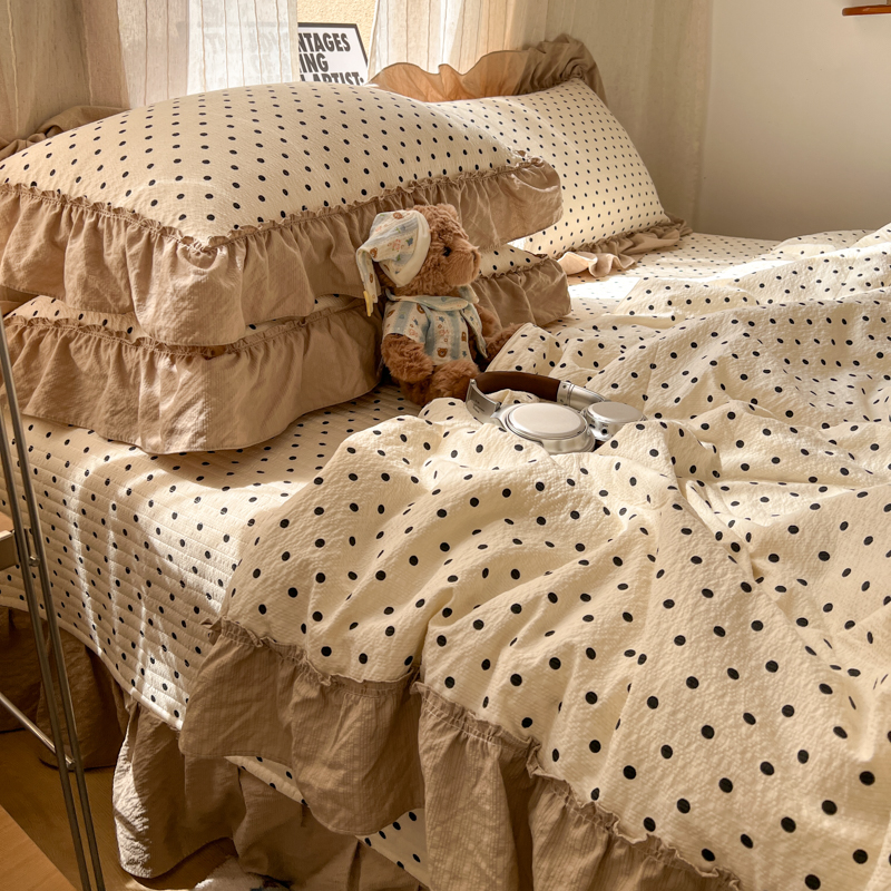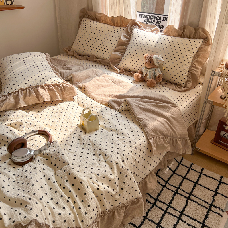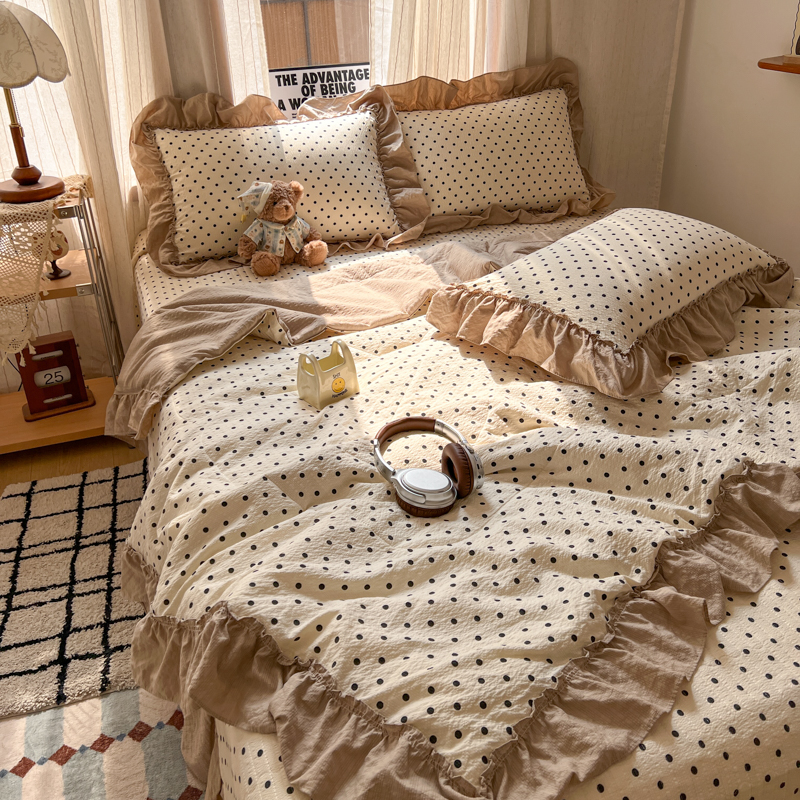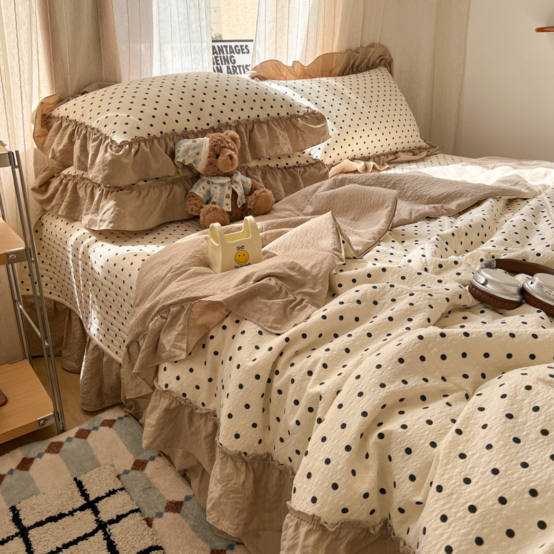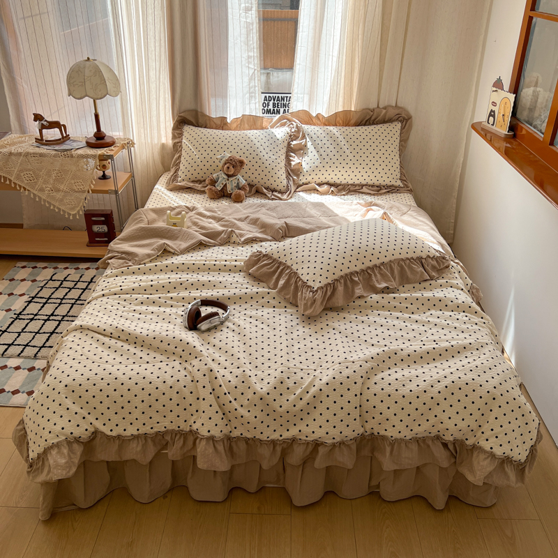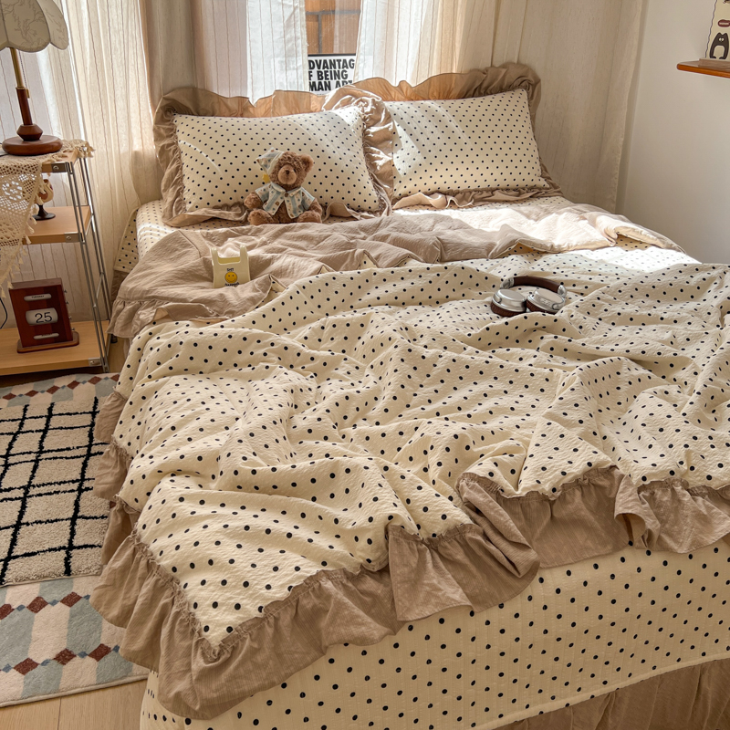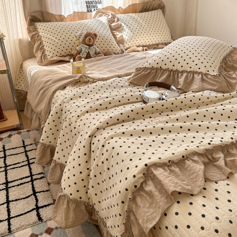 欧尚 2026新款床盖款花边夏被四件套 棕星点