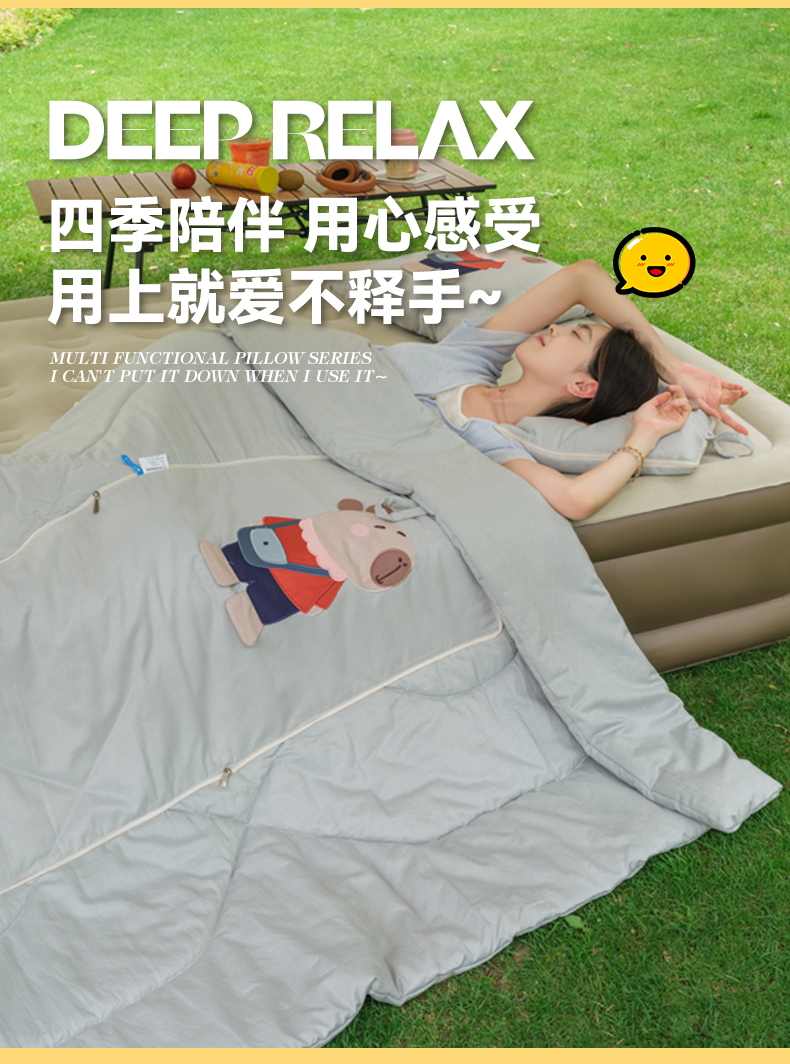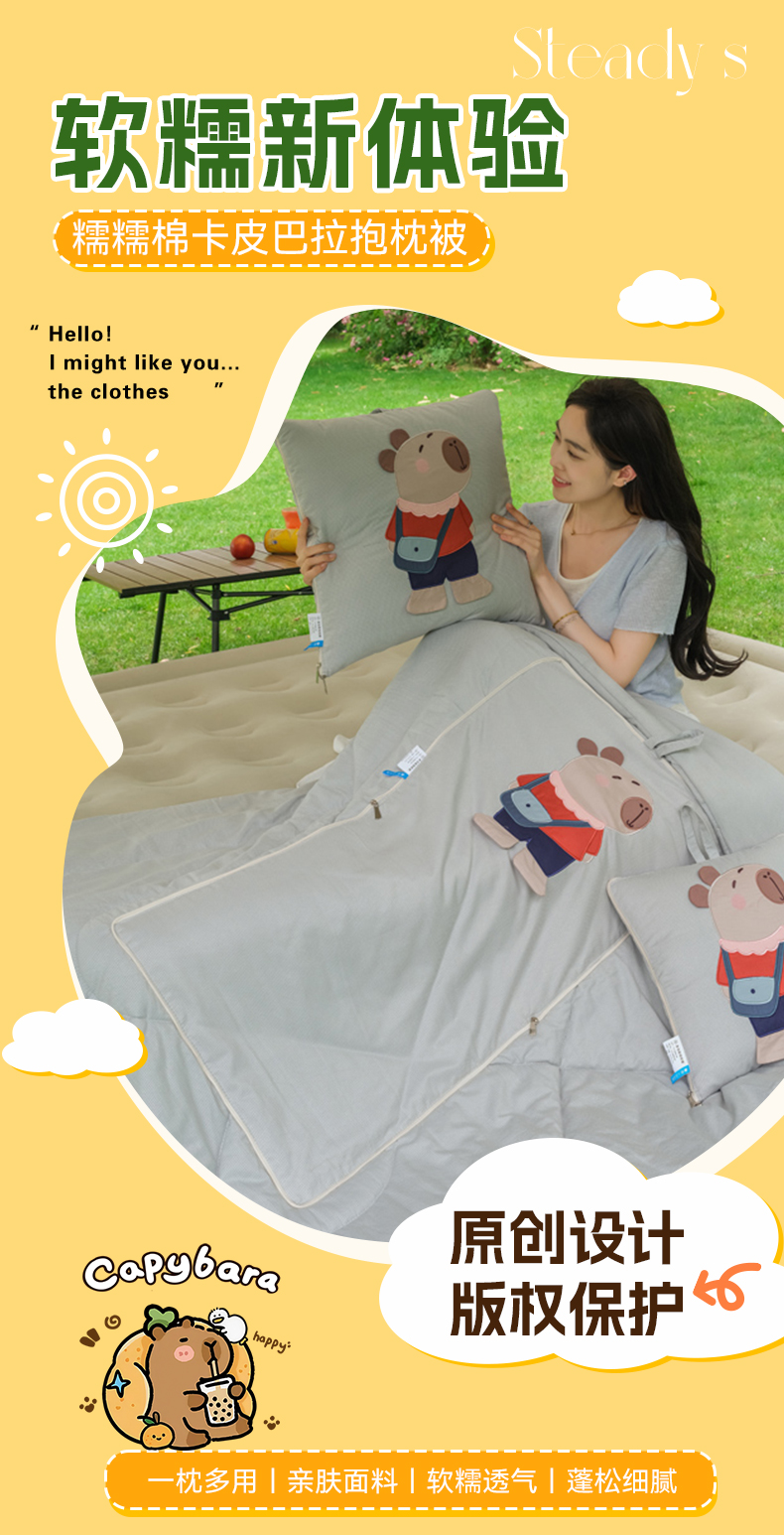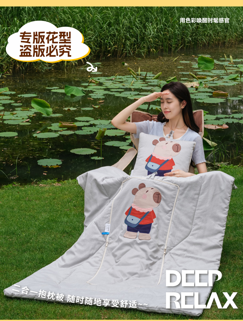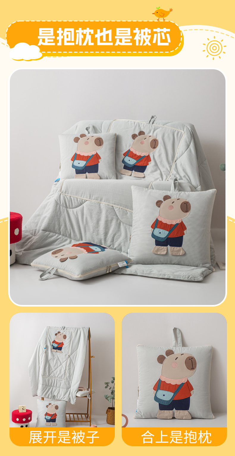 (总)雷娜家居 2026新款糯糯棉四季款卡皮巴拉抱枕被,卡皮巴拉粉色,卡皮巴拉灰色,卡皮巴拉卡其色