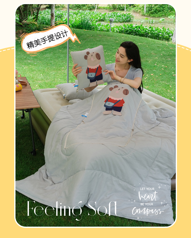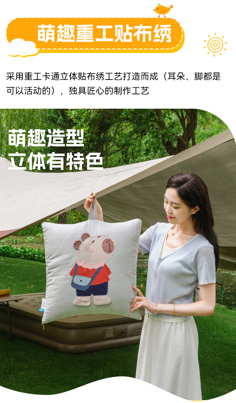 (总)雷娜家居 2025款手提卡通绣花系列抱枕被,手提款大象,手提款小狮子
