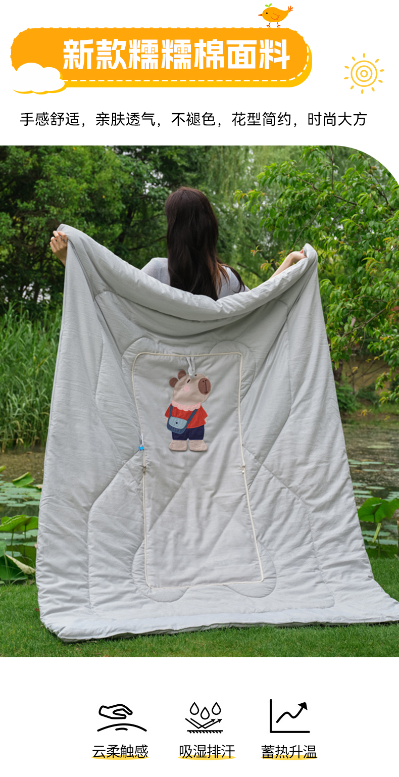 商品名称:雷娜家居 2026新款糯糯棉四季款卡皮巴拉抱枕被 卡皮巴拉灰色