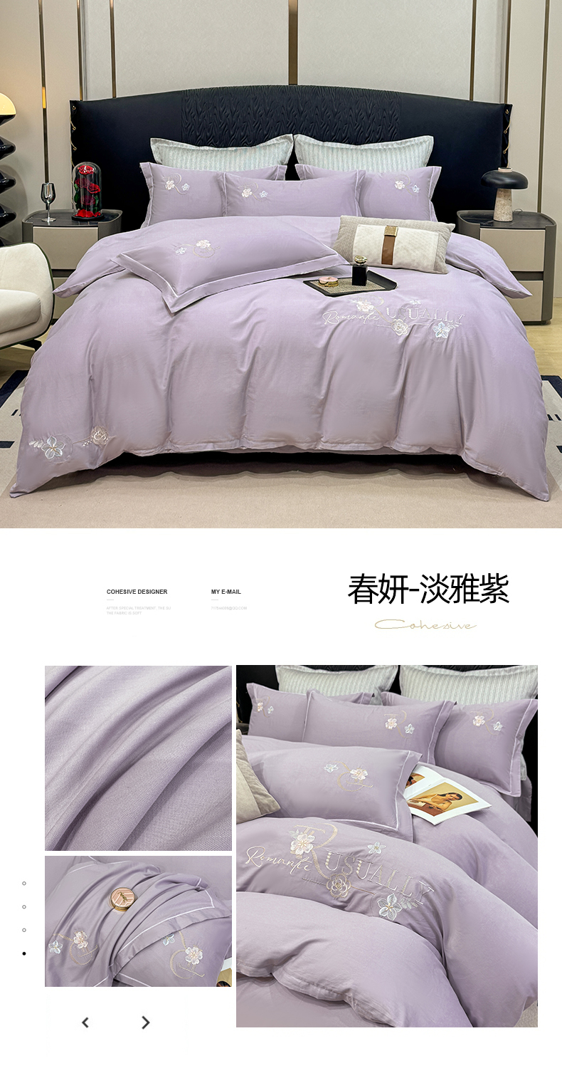商品名称:昊翔家纺 2026全棉纯棉刺绣花四件套40支长绒棉100% 棉礼盒包装 春妍-淡雅紫