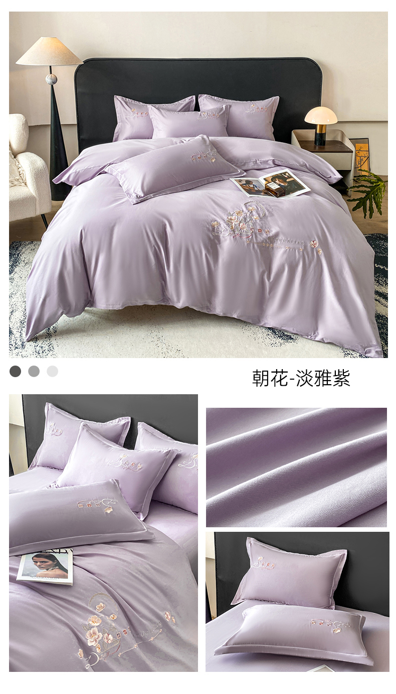 商品名称:昊翔家纺 2026全棉纯棉刺绣花四件套40支长绒棉100% 棉礼盒包装 朝花-淡雅紫