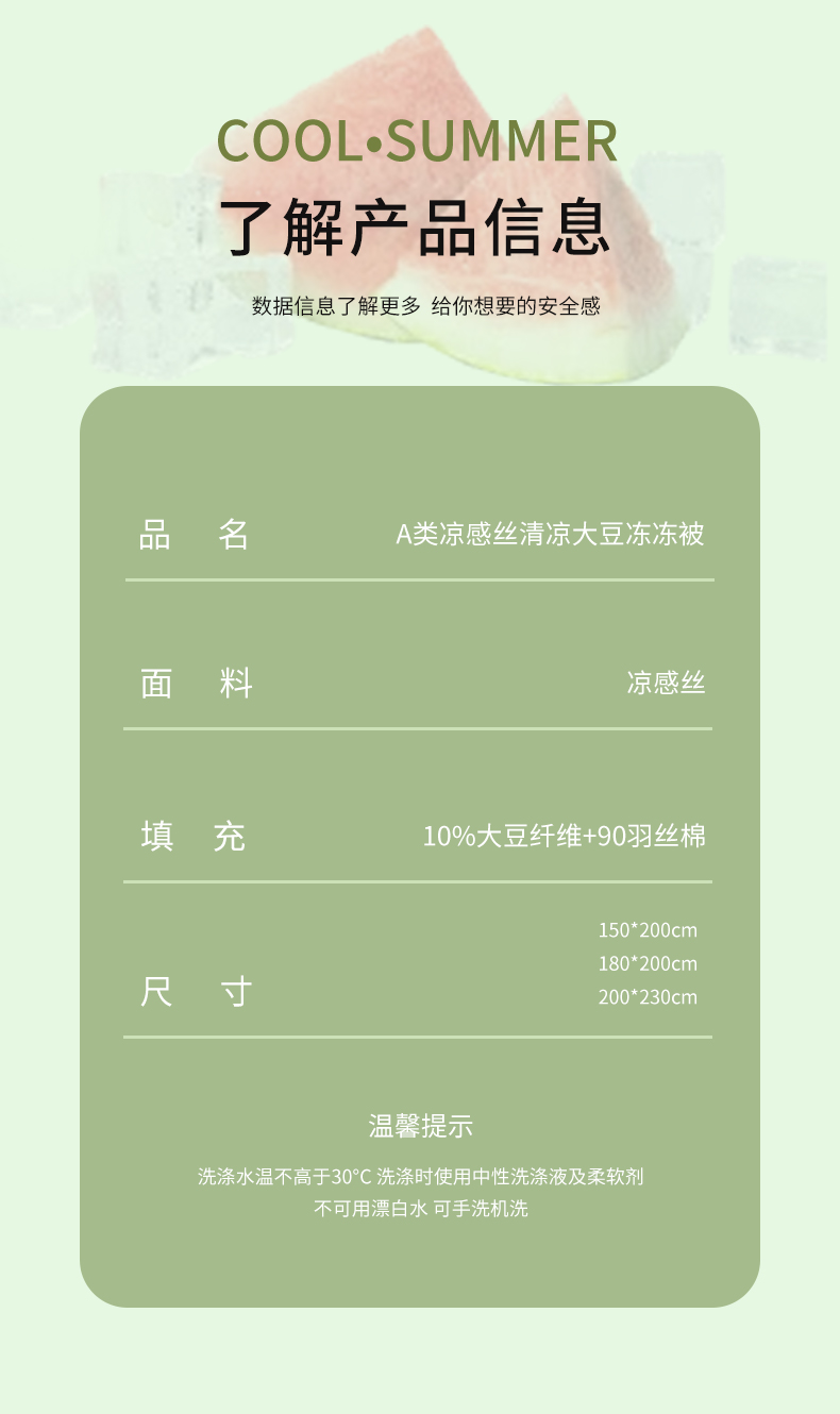 • 适用季节: 空调被/夏凉被