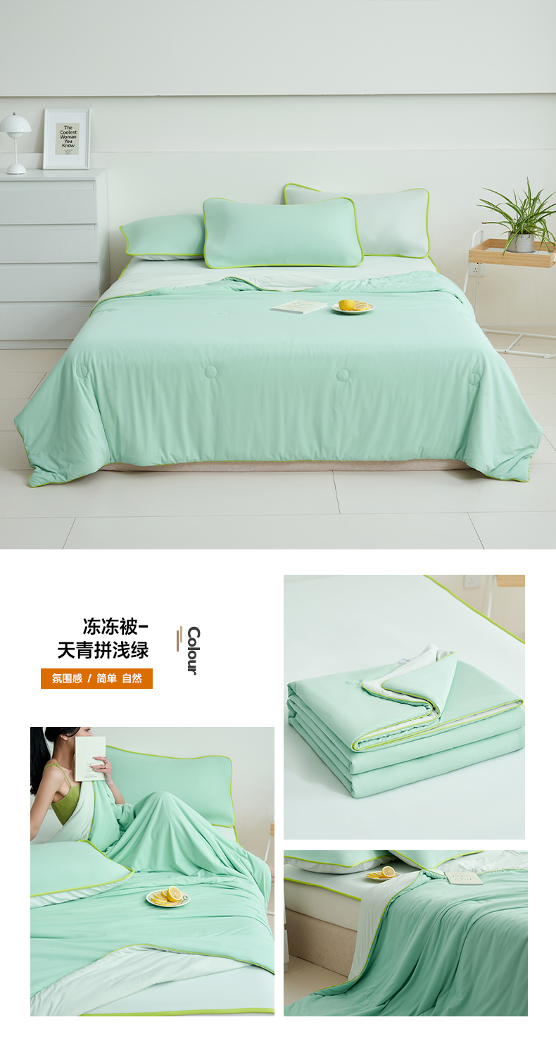 (总)晨曦家纺 2026新款凉感丝清凉大豆夏被夏凉被空调被凉席四件套-熊猫冻冻被,冻冻被-深蓝拼苹果绿,冻冻被-奶油粉灰,冻冻被-苹果绿拼悠粉,冻冻被-浅绿拼奶黄,冻冻被-天蓝拼奶黄,冻冻被-天青色拼天蓝,冻冻被-微醺奶油黄粉,冻冻被-雾蓝灰,组合图仅供展示不可下单