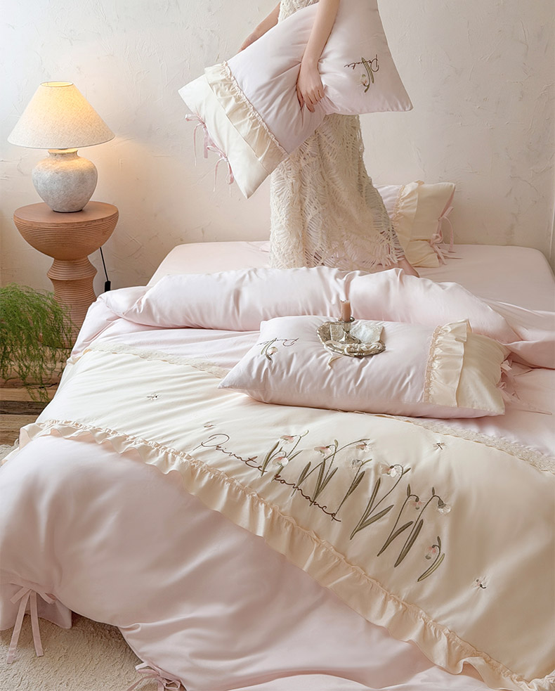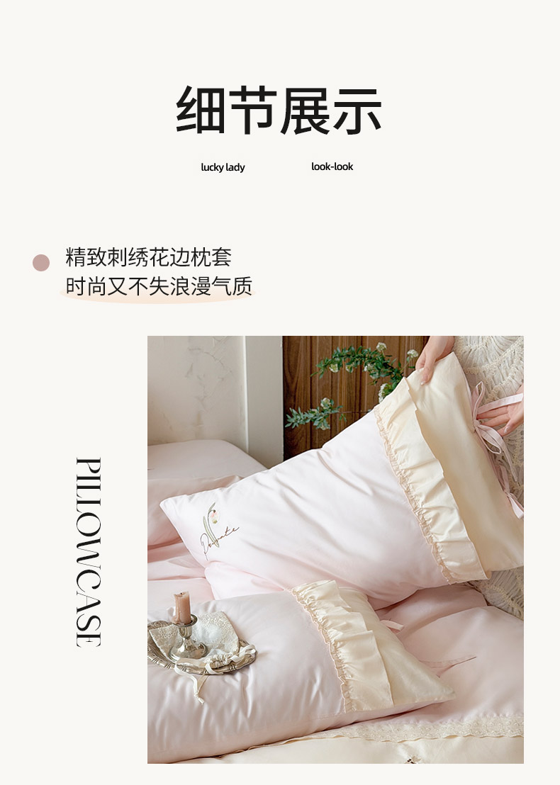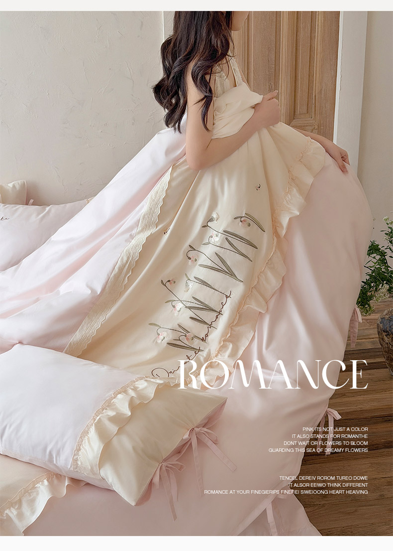 商品名称:艾唯希家纺 2026新款全棉纯棉公主风花边刺绣工艺四件套纯棉-安娜公主系列 安娜公主-粉