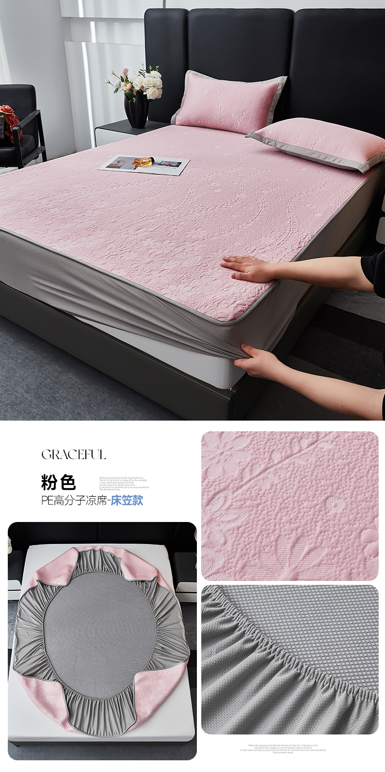 (总)库里梦家纺 2026新款轻奢高克重复合PE高分子凉席床笠三件套-素瑾,素瑾-粉色床席款,素瑾-灰色床席款,素瑾-蓝色床席款,素瑾-绿色床席款,素瑾-粉色床笠款,素瑾-灰色床笠款,素瑾-蓝色床笠款,素瑾-绿色床笠款