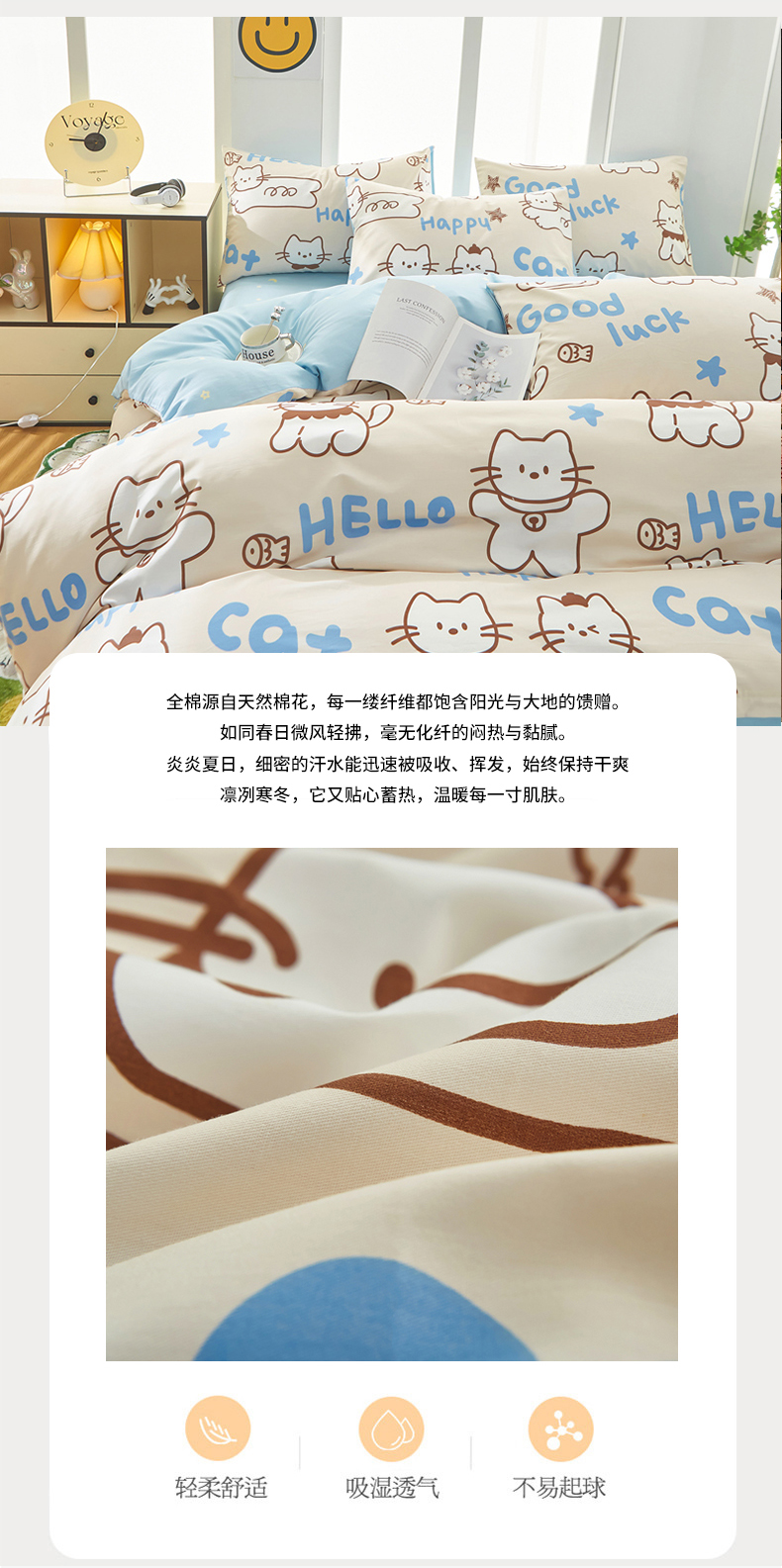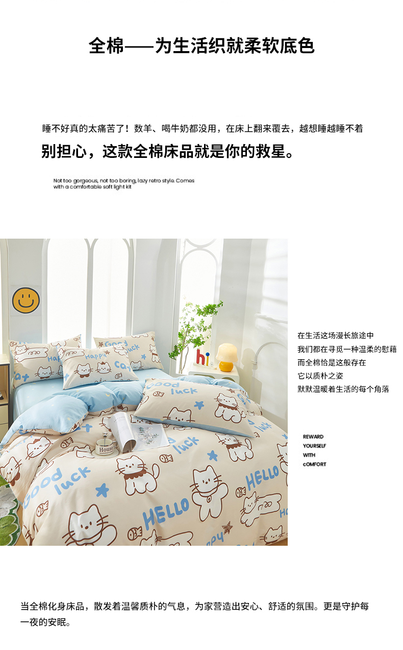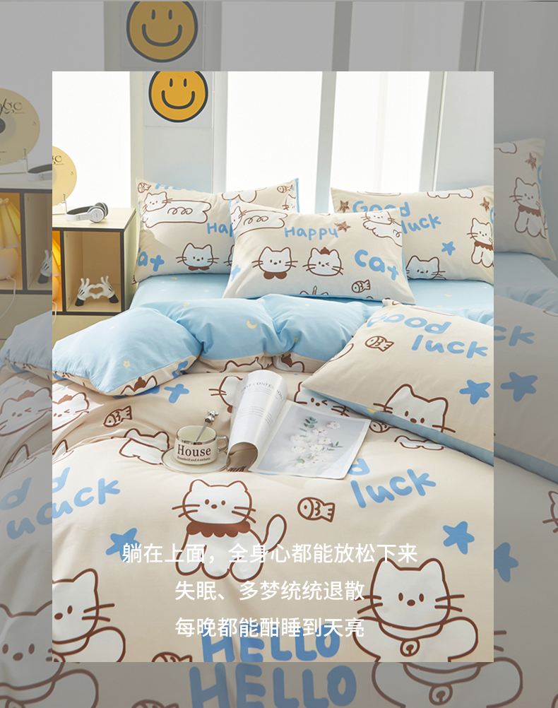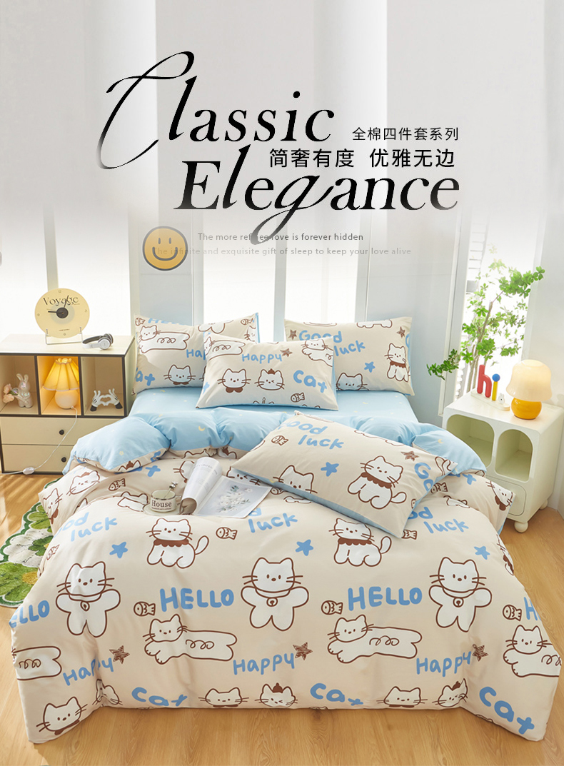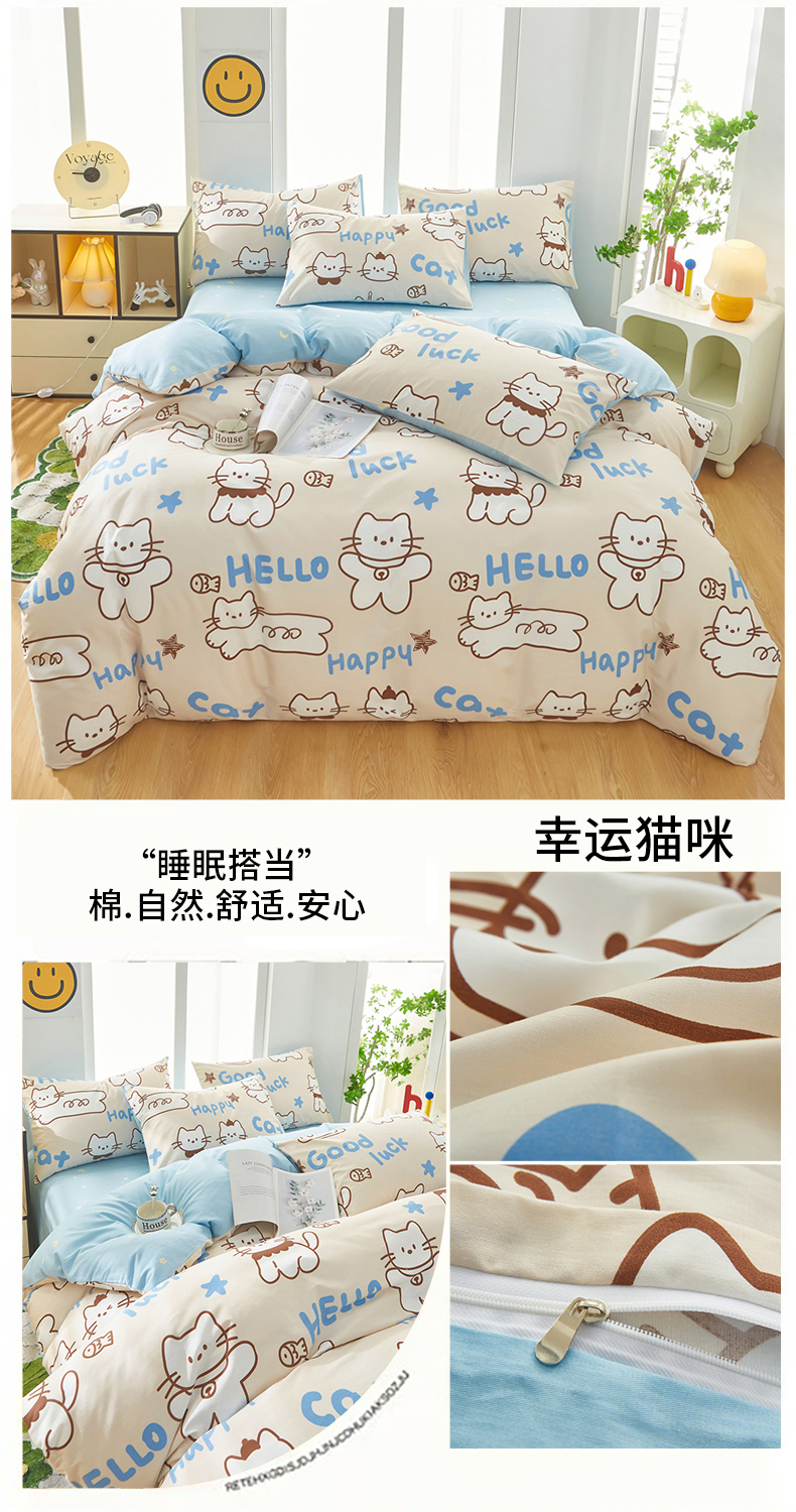 当前位置: 91家纺网 > 商品网购 > 床品套件 > 四件套 > 全棉普通四件套 > 黛妮雅 2026新款全棉印花床单款四件套(送买家秀)幸运猫咪