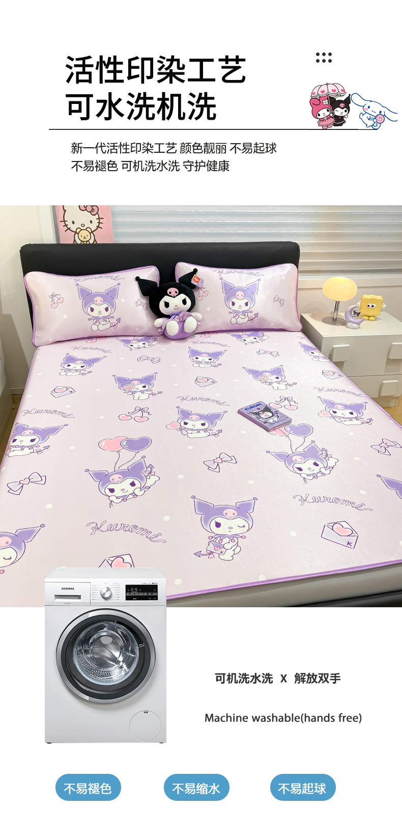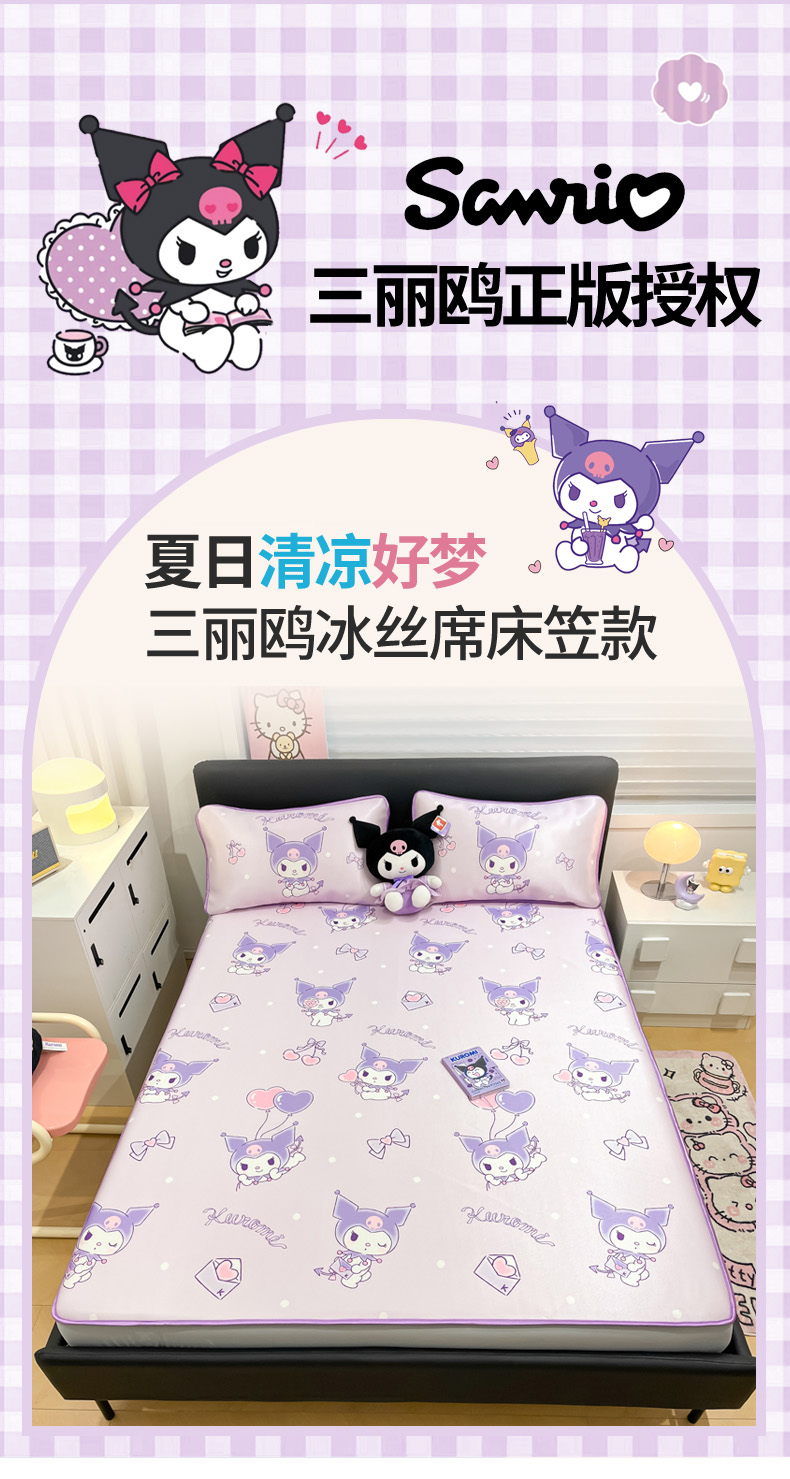 当前位置: 91家纺网 > 商品网购 > 床上用品 > 凉席 > 凉席套件 > 暮思家居 2026新款三丽鸥正版授权数码印花A类可机洗1200D冰丝凉席三件套床笠款系列 床笠款-气球库洛米