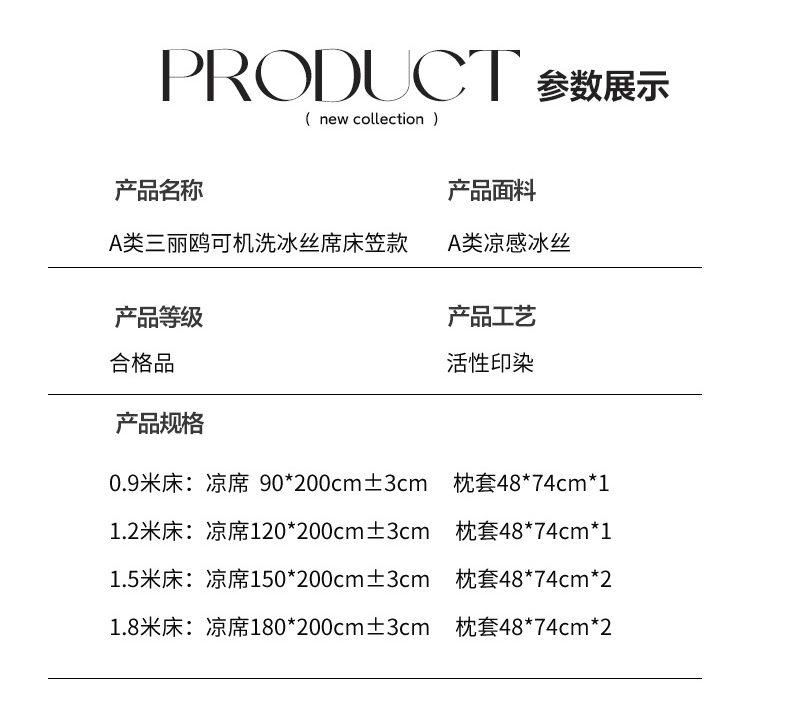150x200cm凉席+枕套一对 | ¥75.00 |
