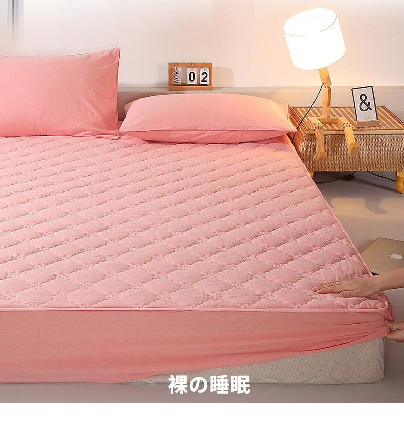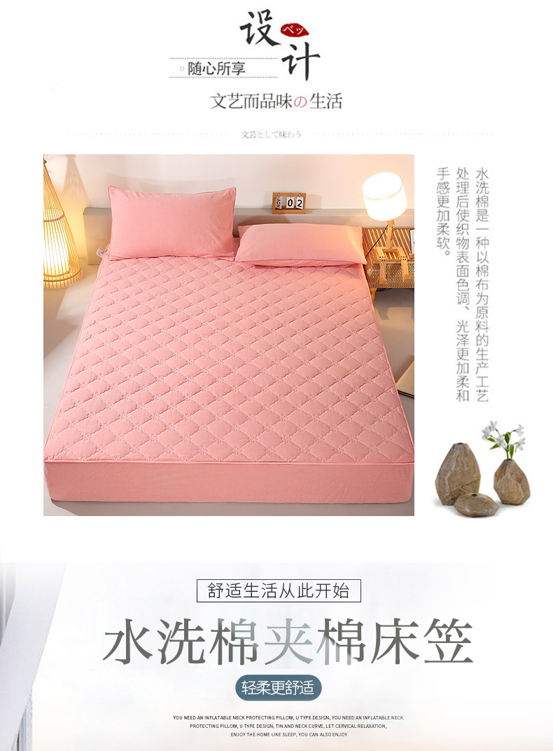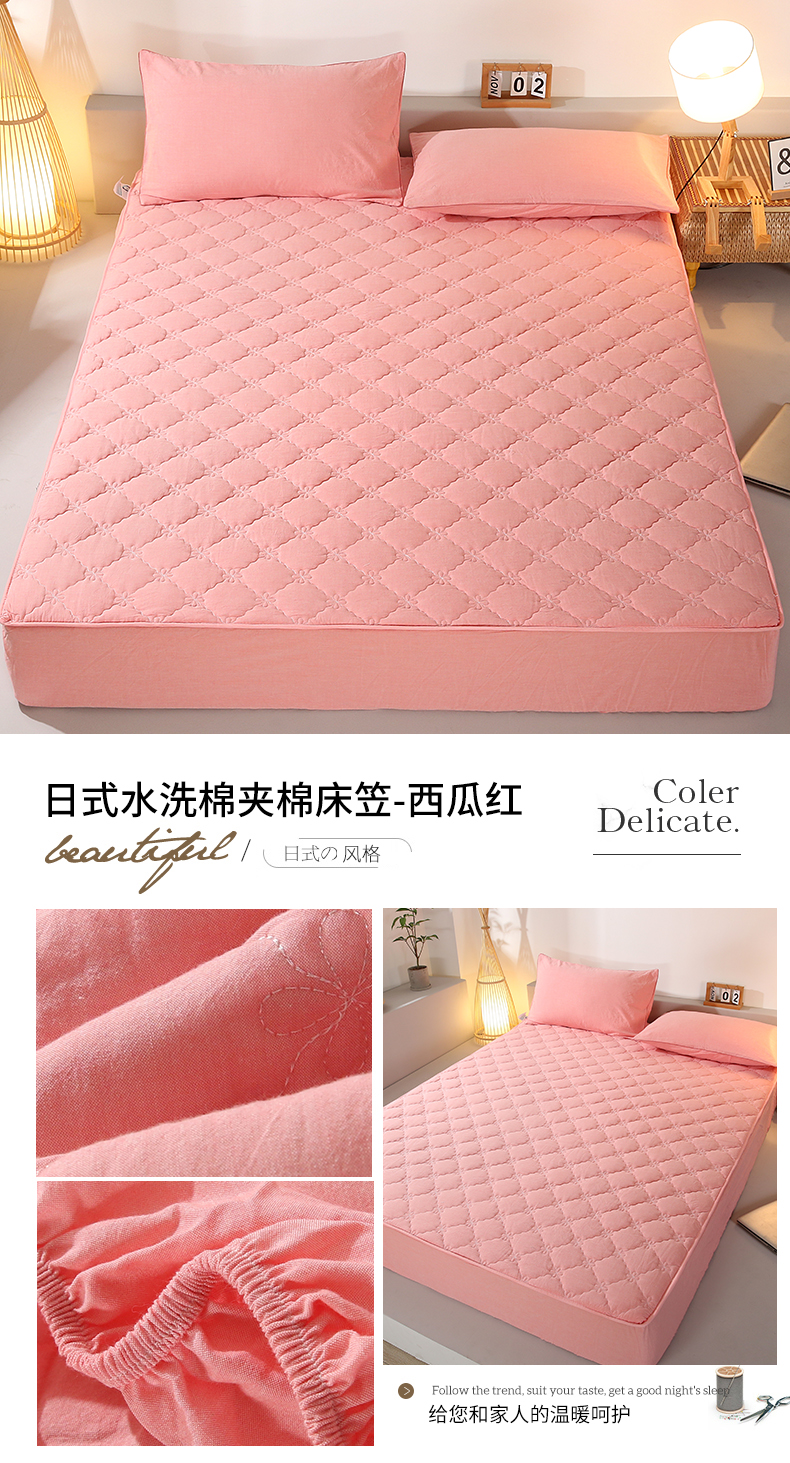 乐逸家纺 2026新款日式100%全棉色织水洗棉夹棉床笠 日式水洗棉夹棉床笠-西瓜红