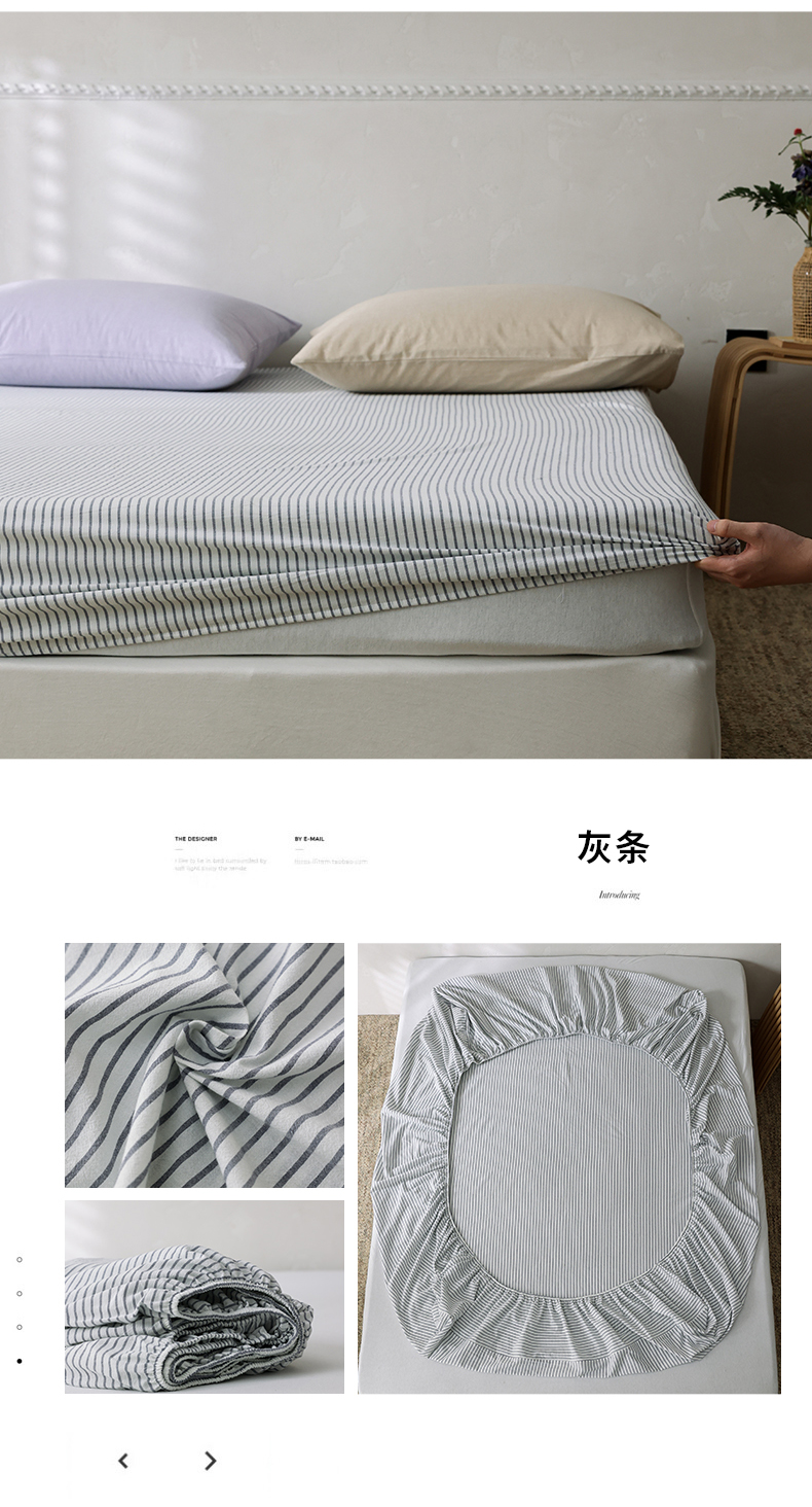 (总)棉眠 2026新款调色盘全棉纯棉水洗棉混搭单品系列-条纹单床笠,组合图仅供展示不可下单,灰条,卡其条,蓝条,绿条,米白条,蜜瓜条