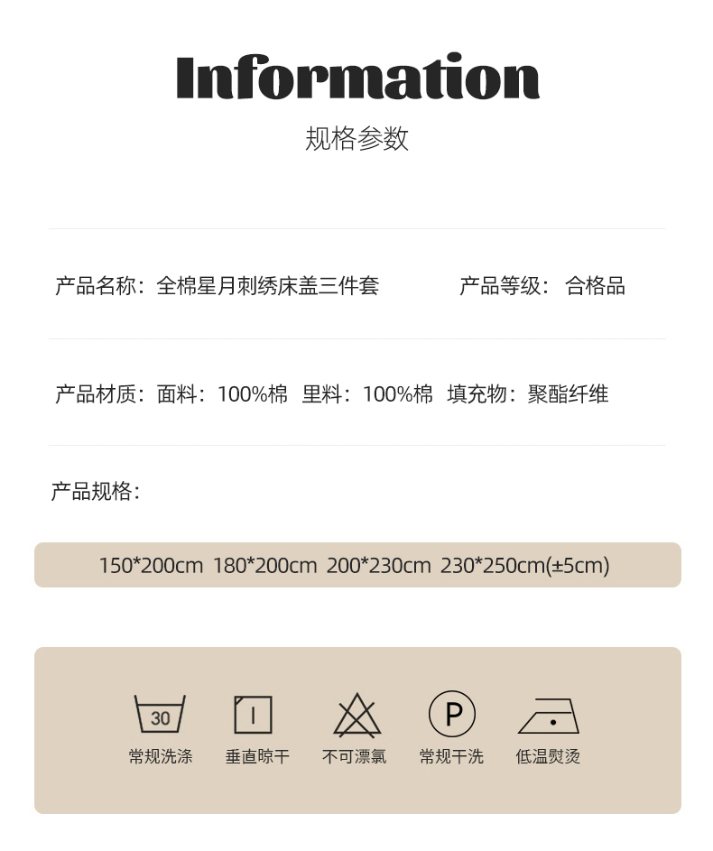 (总)沐纯家居 2026春夏新款全棉星月刺绣床盖三件套,组合图仅供展示不可下单,星月蓝,星月绿,星月白,星月粉,星月黄,星月灰