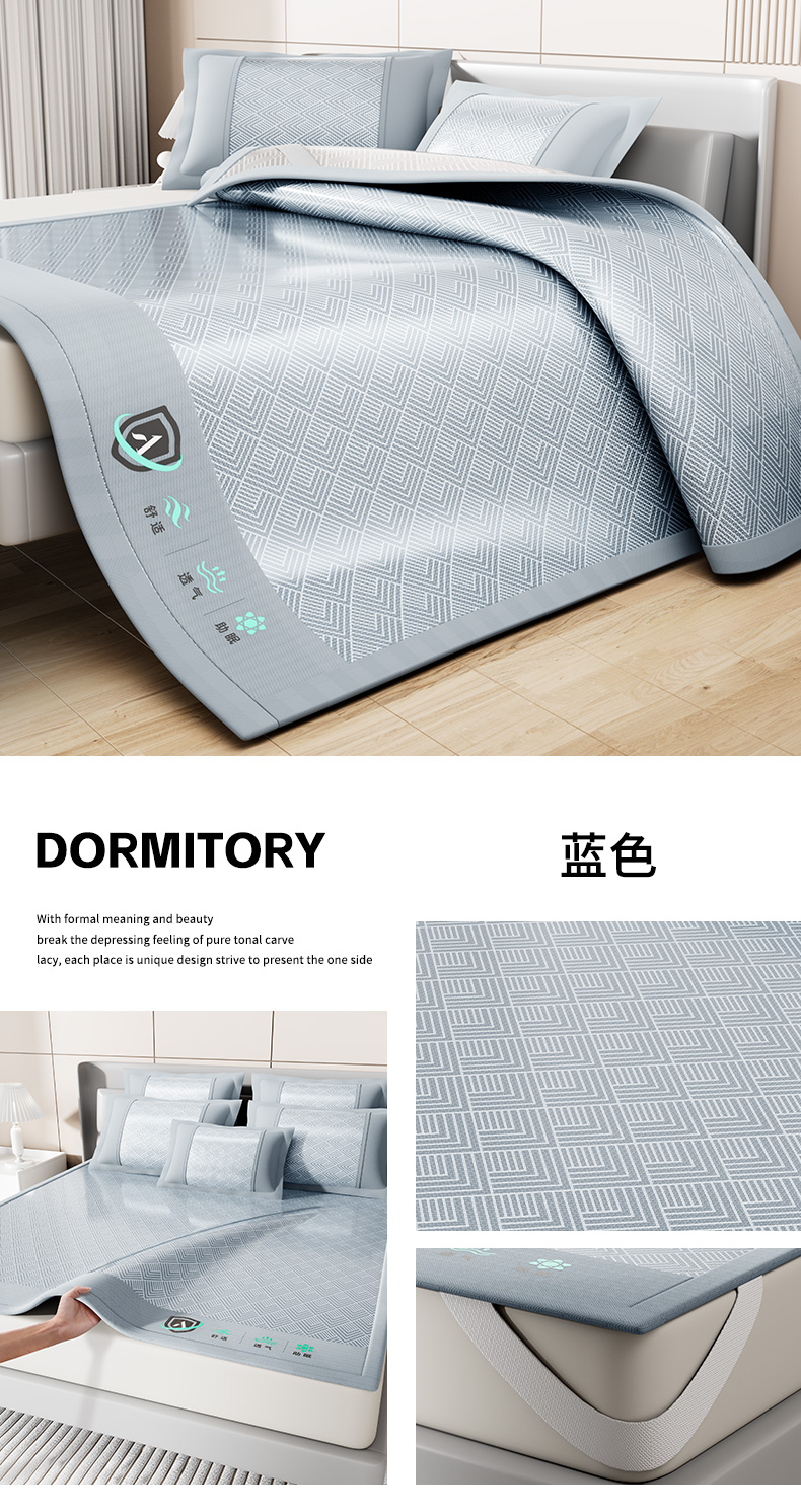 • 91家纺网 家纺一手货源 找家纺 (总)永旺家纺 2026新款羽毛刺绣冰藤席子凉席,灰色,蓝色,绿色,棕色