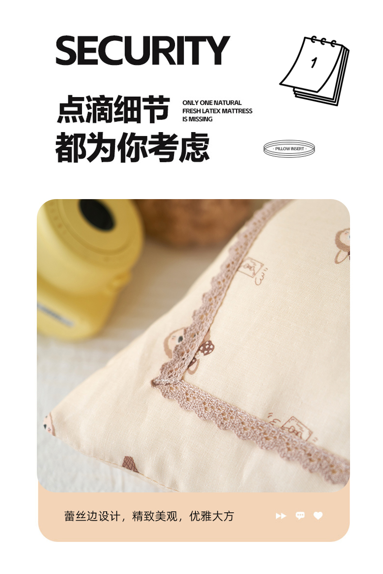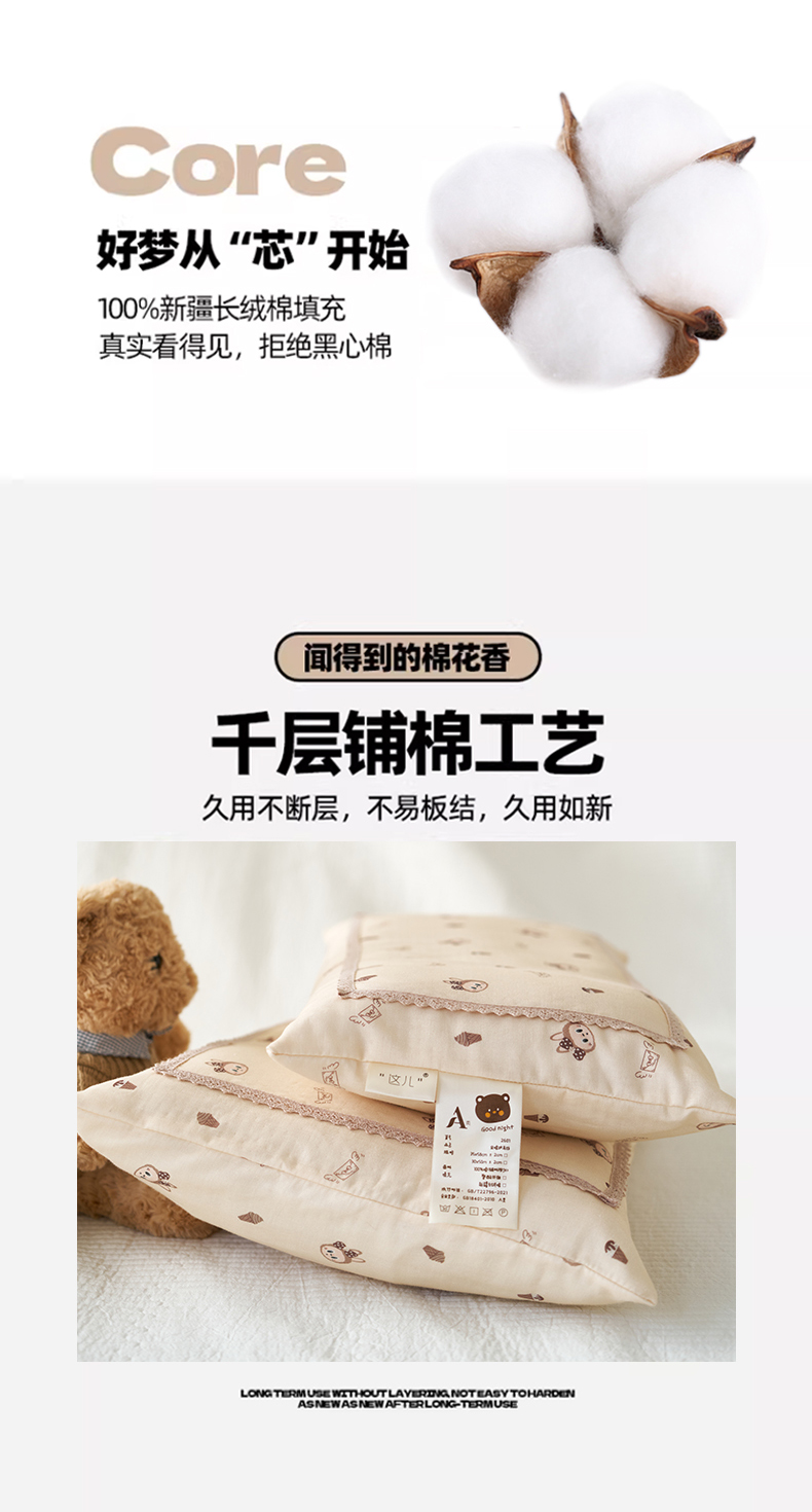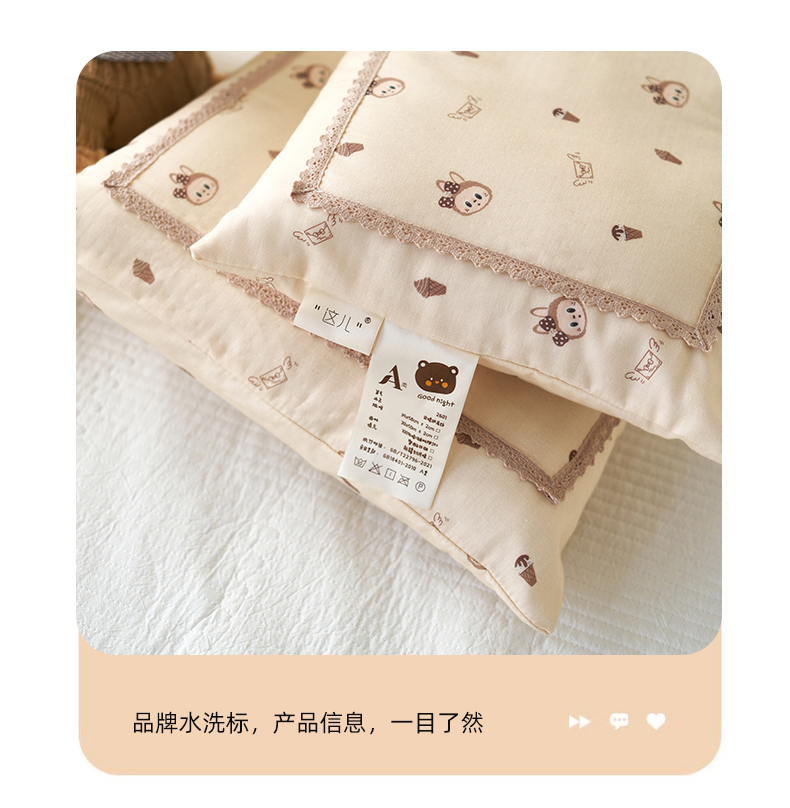 (总)珍贝家纺 2026新款全棉双层纱刺绣花边学生儿童枕枕头枕芯,米小熊,蓝小熊,小南瓜,小汽车,小天鹅,小兔子,小星球,组合图仅供参考不可下单