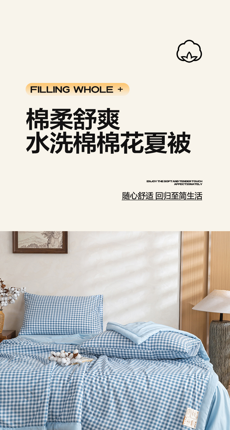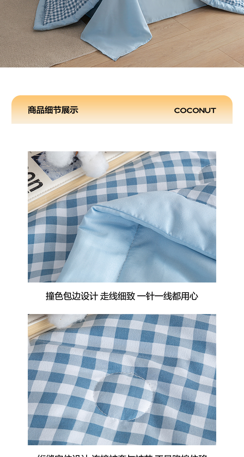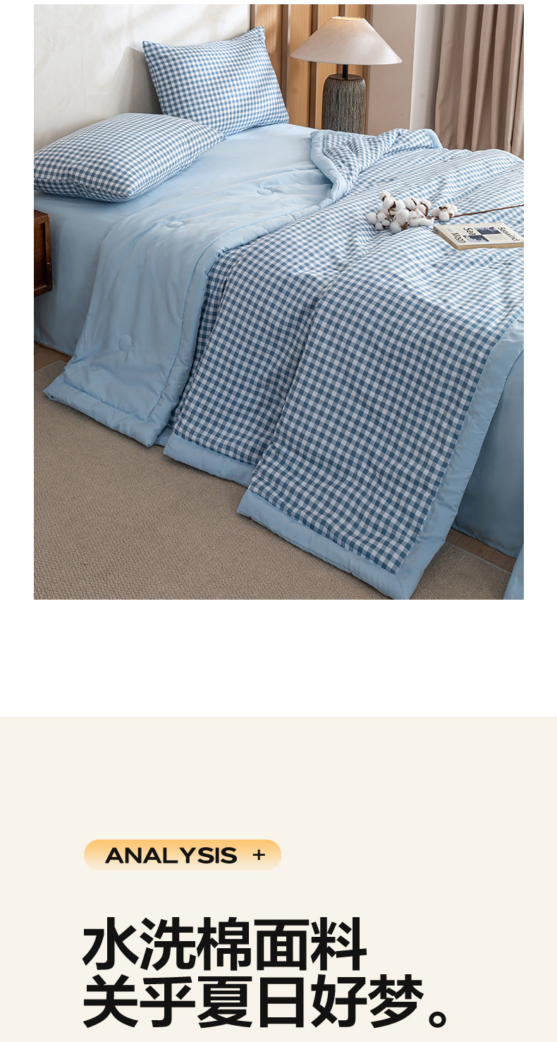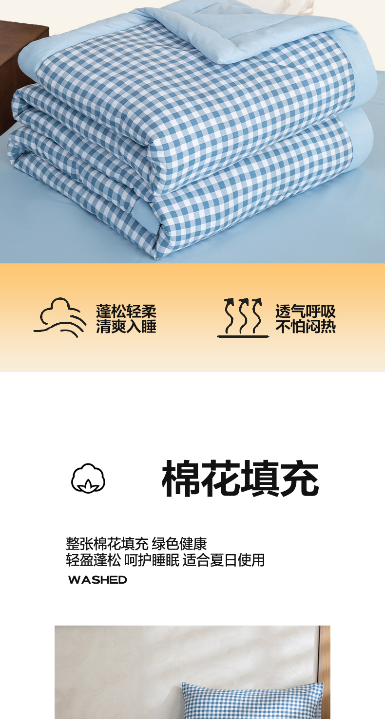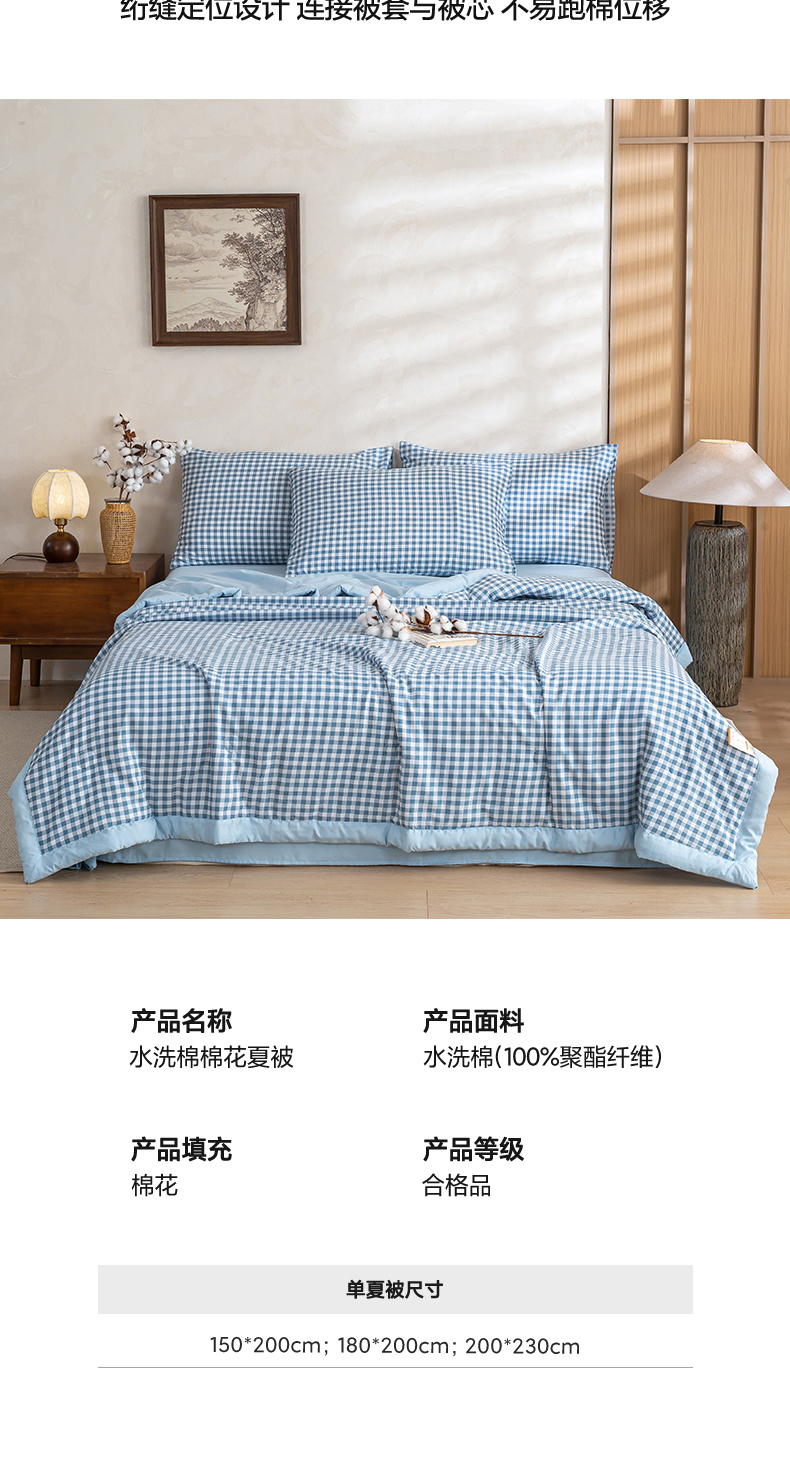 商品名称:(总)憨豆家纺 2026新款无印风水洗棉新疆棉花夏被格子夏凉被空调被子直播被芯