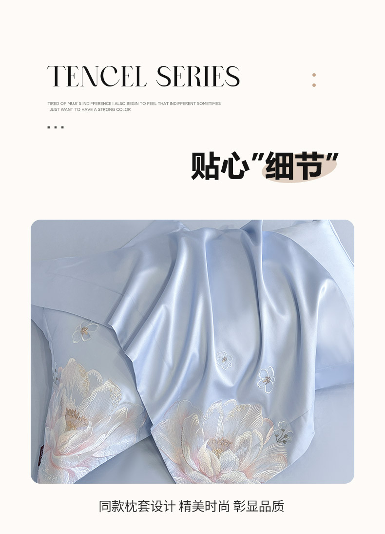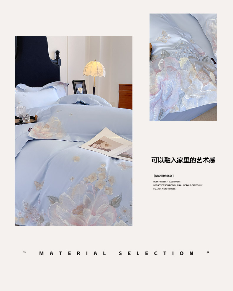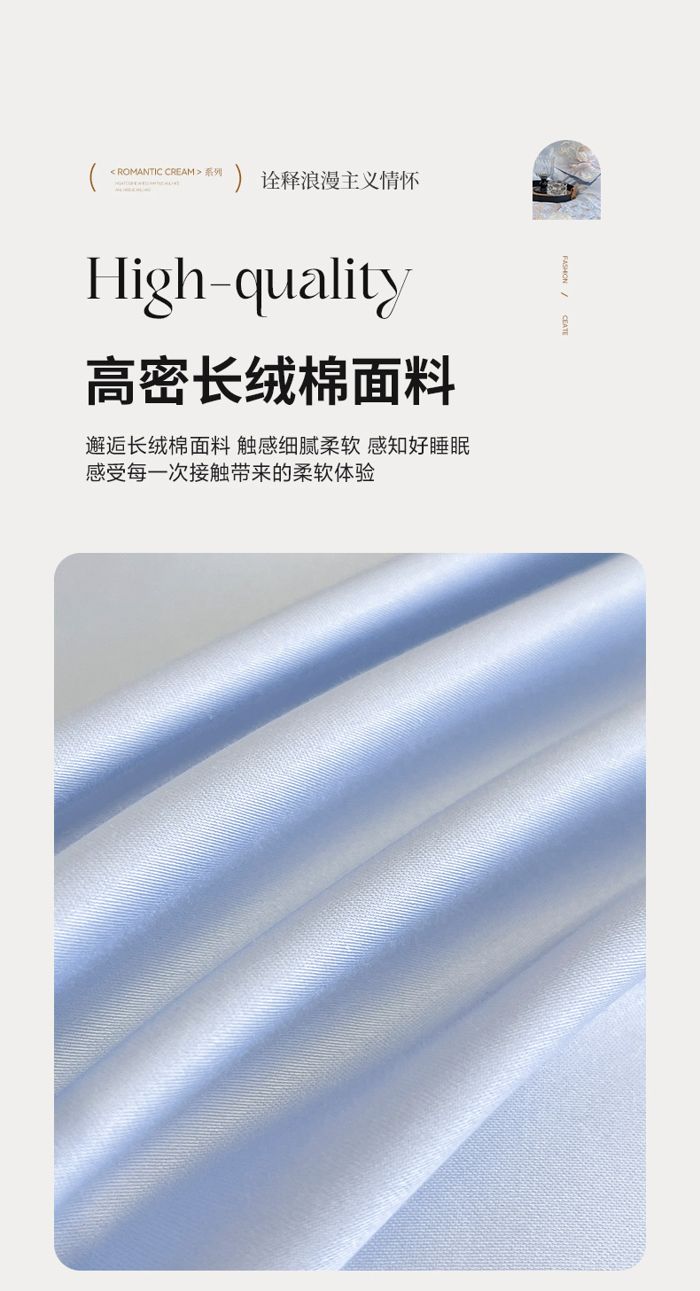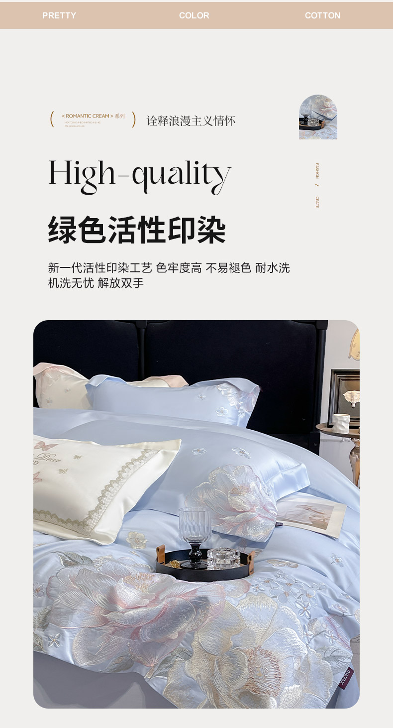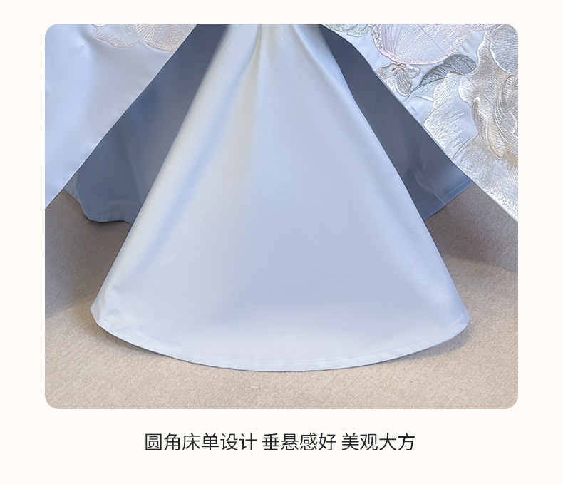 商品名称:2026新品A类100支贡缎长绒棉纯棉四件套全棉重工刺绣全工艺被套床单床笠高端轻奢风床上用品-朵卿 朵卿-慕蓝