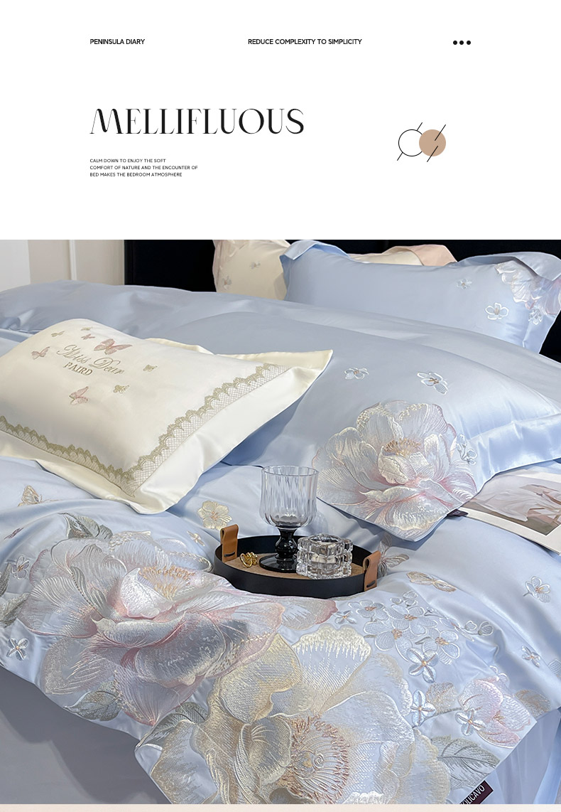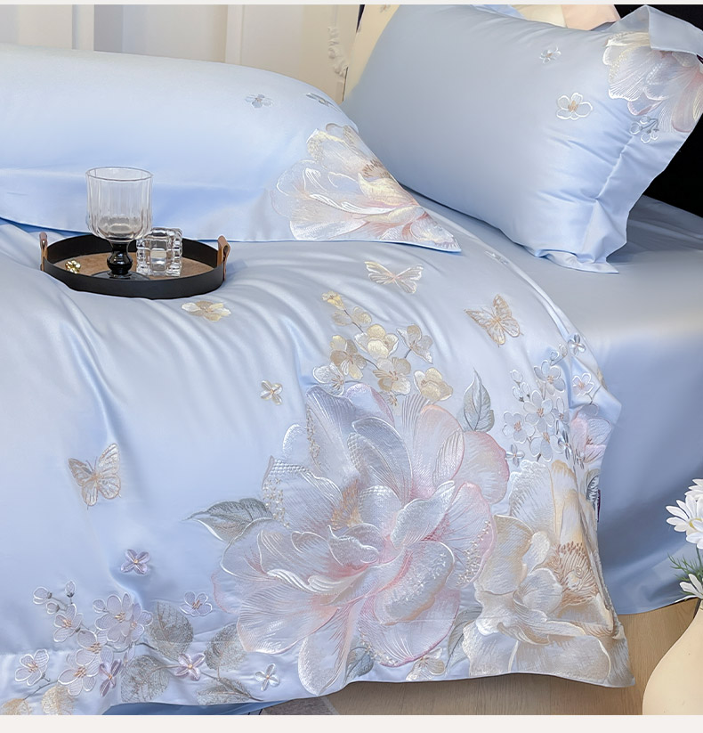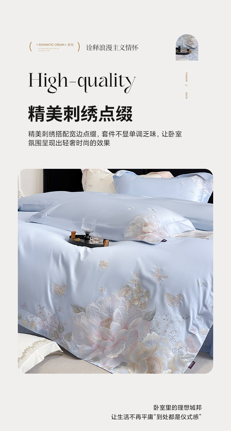 2026新品A类100支贡缎长绒棉纯棉四件套全棉重工刺绣全工艺被套床单床笠高端轻奢风床上用品-朵卿 朵卿-慕蓝