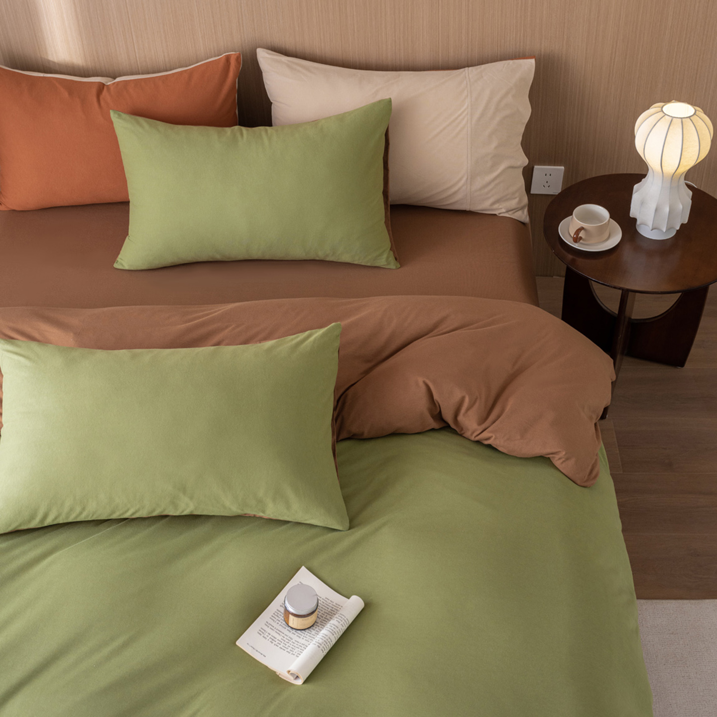 (总)梦可莱家居 2026春夏新品全棉针织棉纯色双拼简约百搭时尚系列四件套,双拼-绿棕,奶茶,双拼-豆绿,双拼-豆沙,双拼-黄紫,双拼-焦糖,双拼-蓝灰,双拼-米咖,双拼-奶卡,双拼-森林绿,双拼-香芋