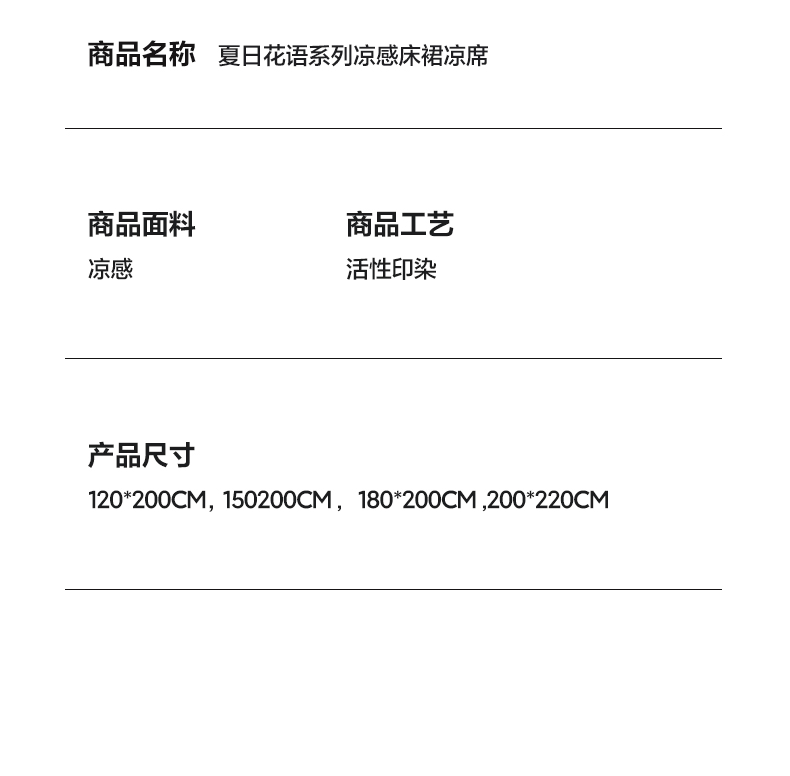 商品名称:(总)雅居纺家纺 2026新款夏日花语系列凉感床裙凉席