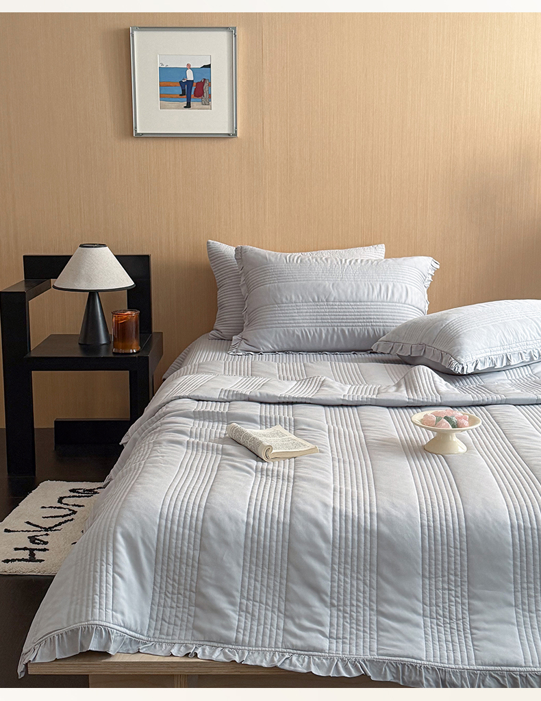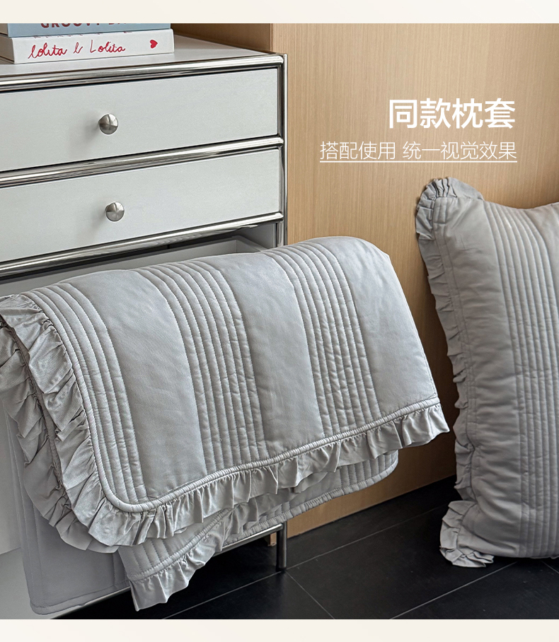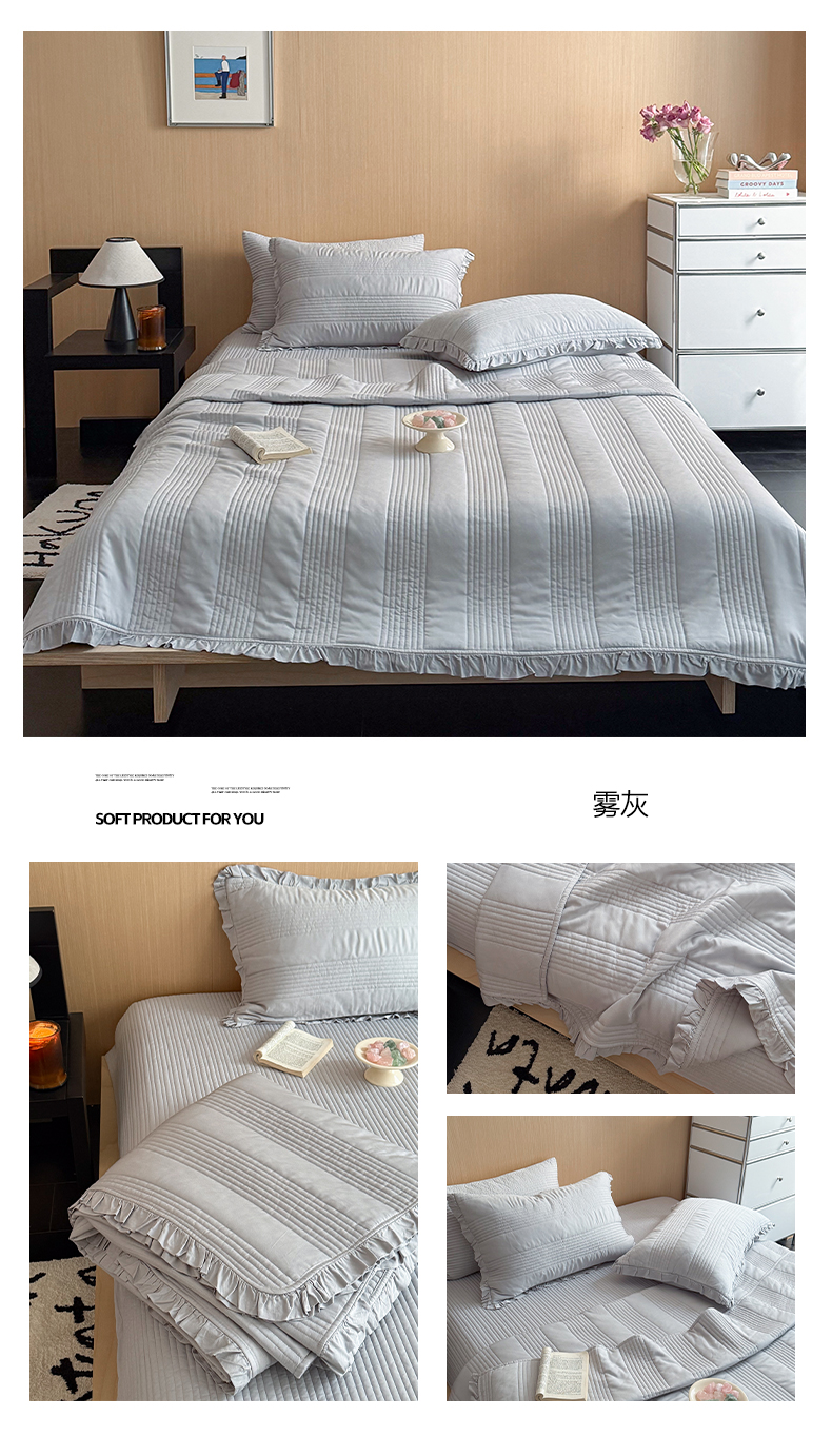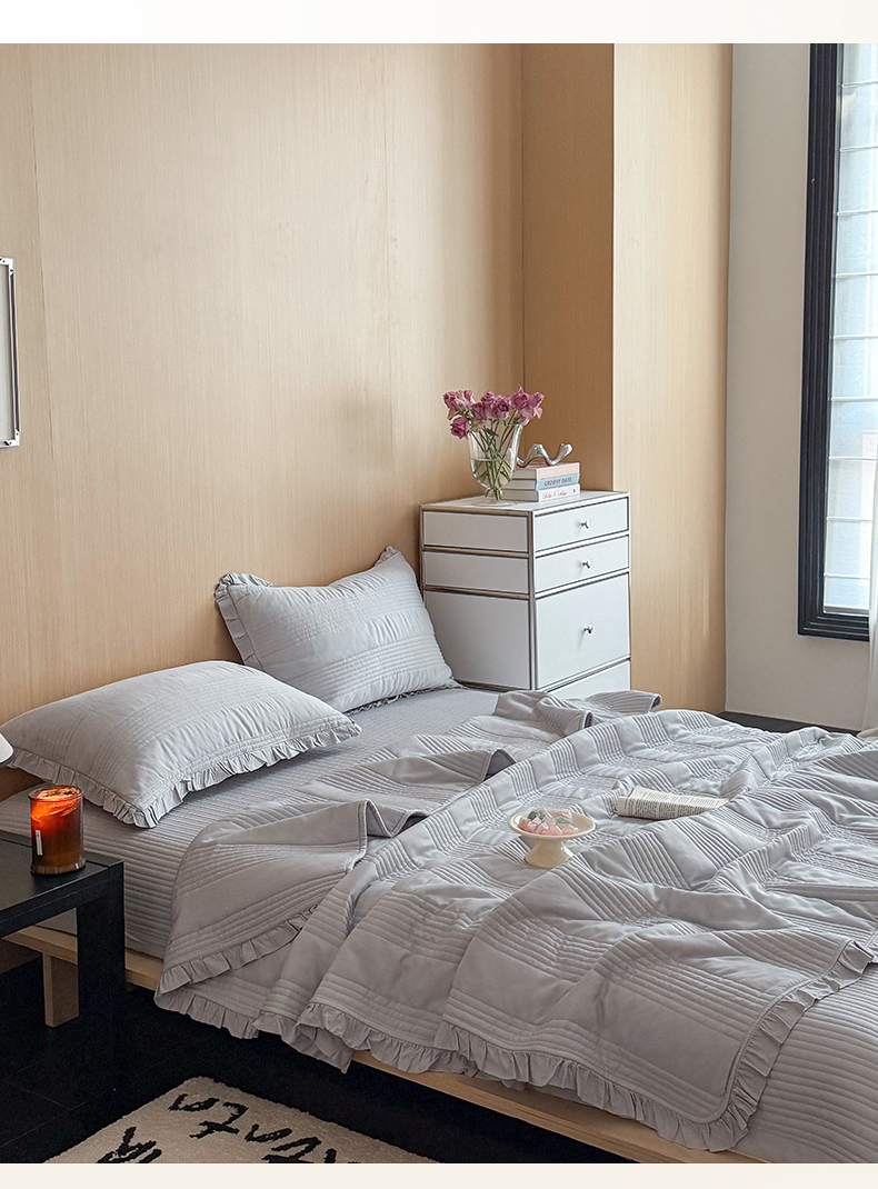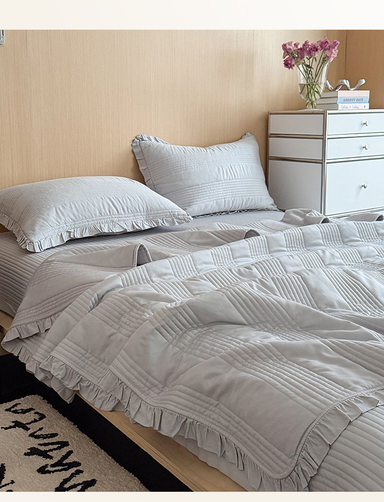商品名称:漫调家纺 2026新款韩国莫代尔夏被床盖系列-花边款 雾灰