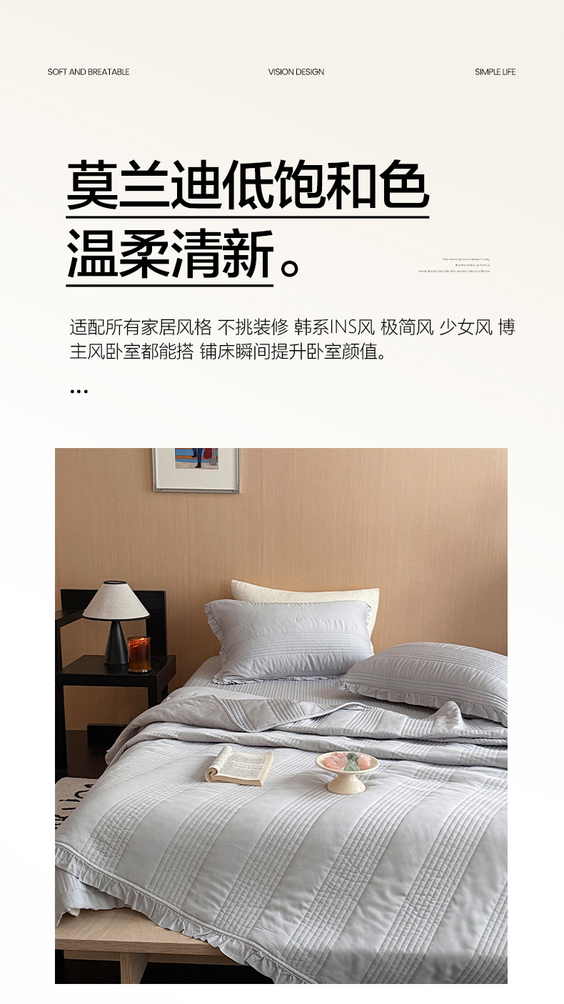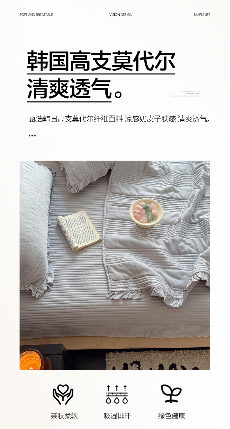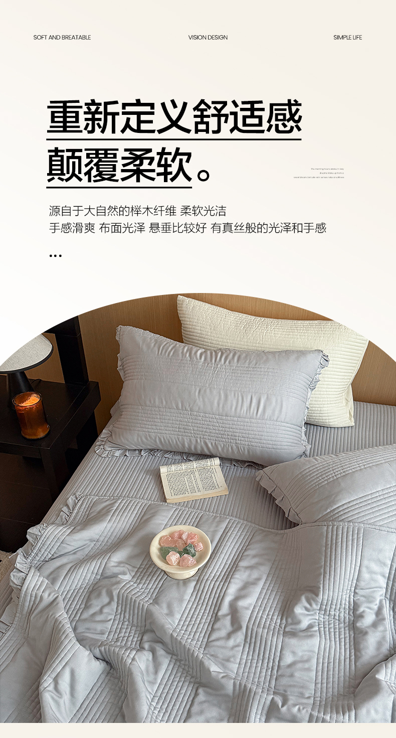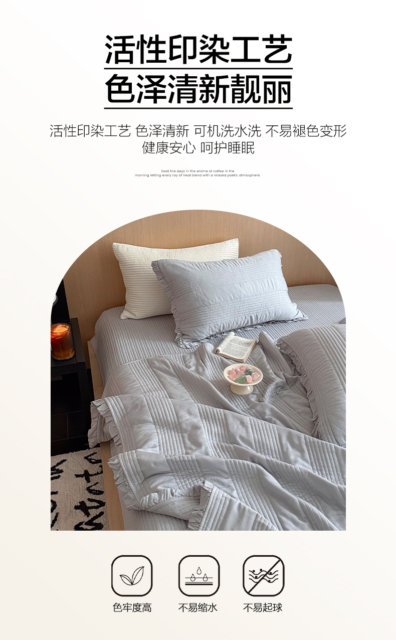 商品名称:漫调家纺 2026新款韩国莫代尔夏被床盖系列-花边款 雾灰