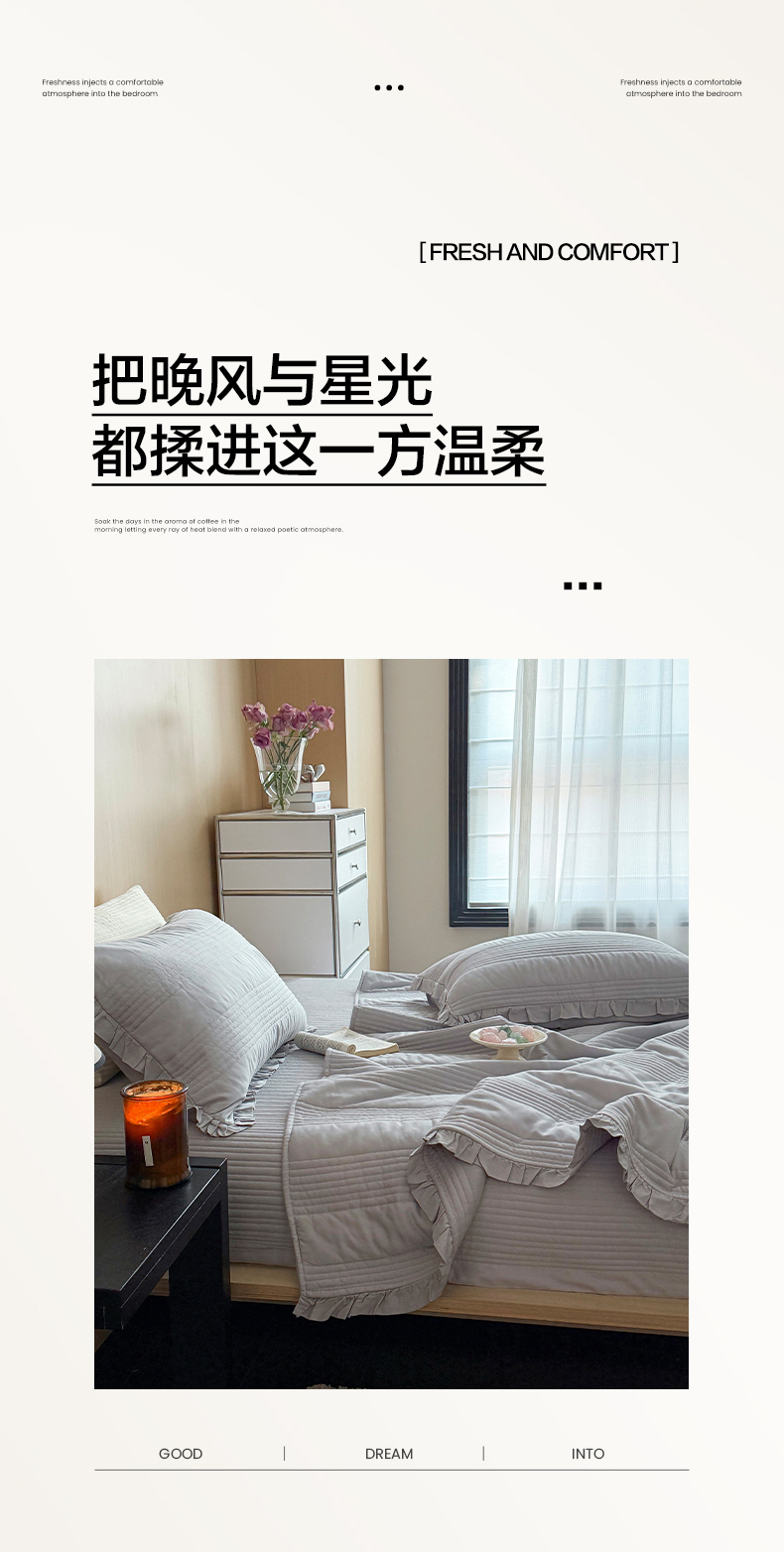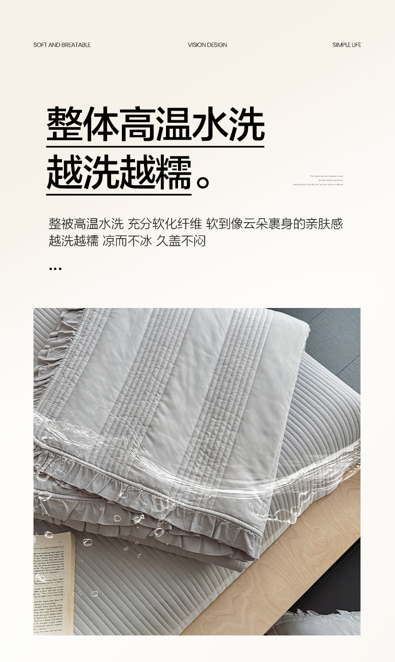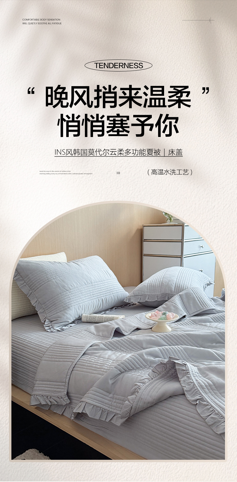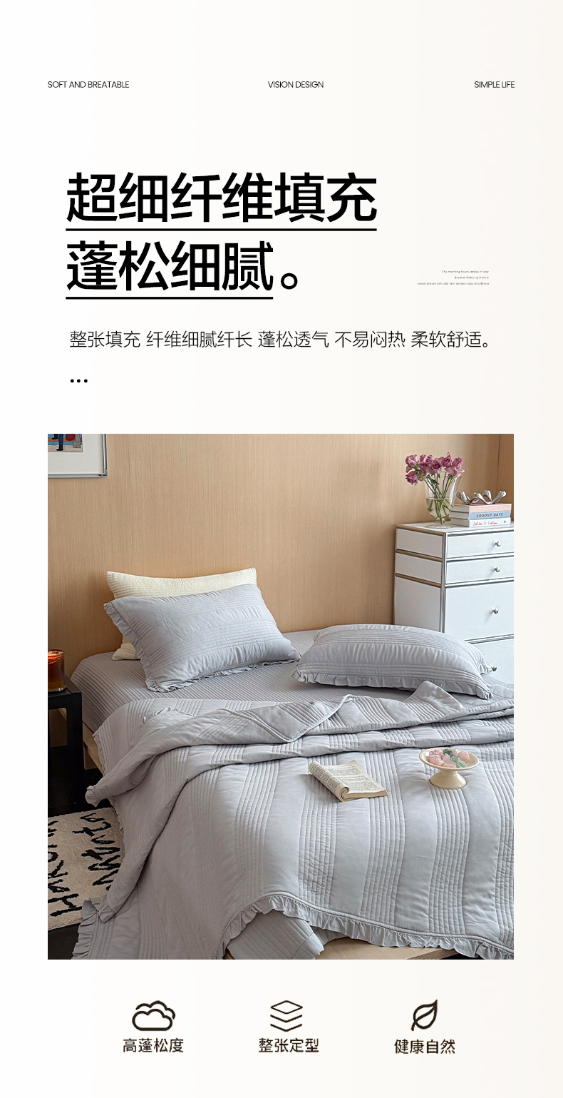 商品名称:漫调家纺 2026新款韩国莫代尔夏被床盖系列-花边款 雾灰