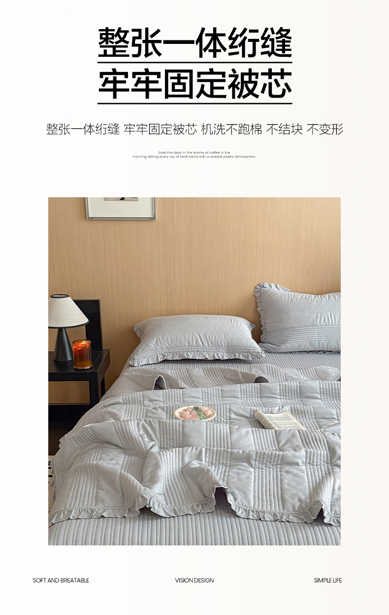 (总)漫调家纺 2025新款繁星绗缝夏被 复古风实拍,繁星白,繁星粉,繁星灰,繁星咖,繁星绿,繁星杏