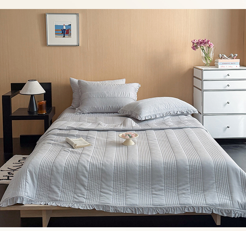 漫调家纺 2026新款韩国莫代尔夏被床盖系列-花边款 雾灰