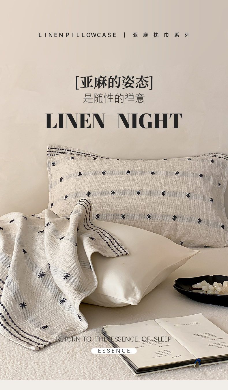 商品名称:麻依 2026新款四层纱布亚麻枕巾棉麻 点点星