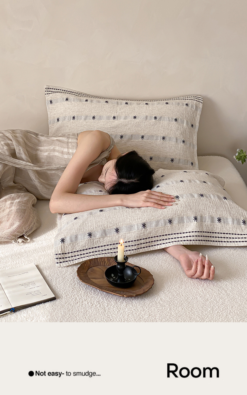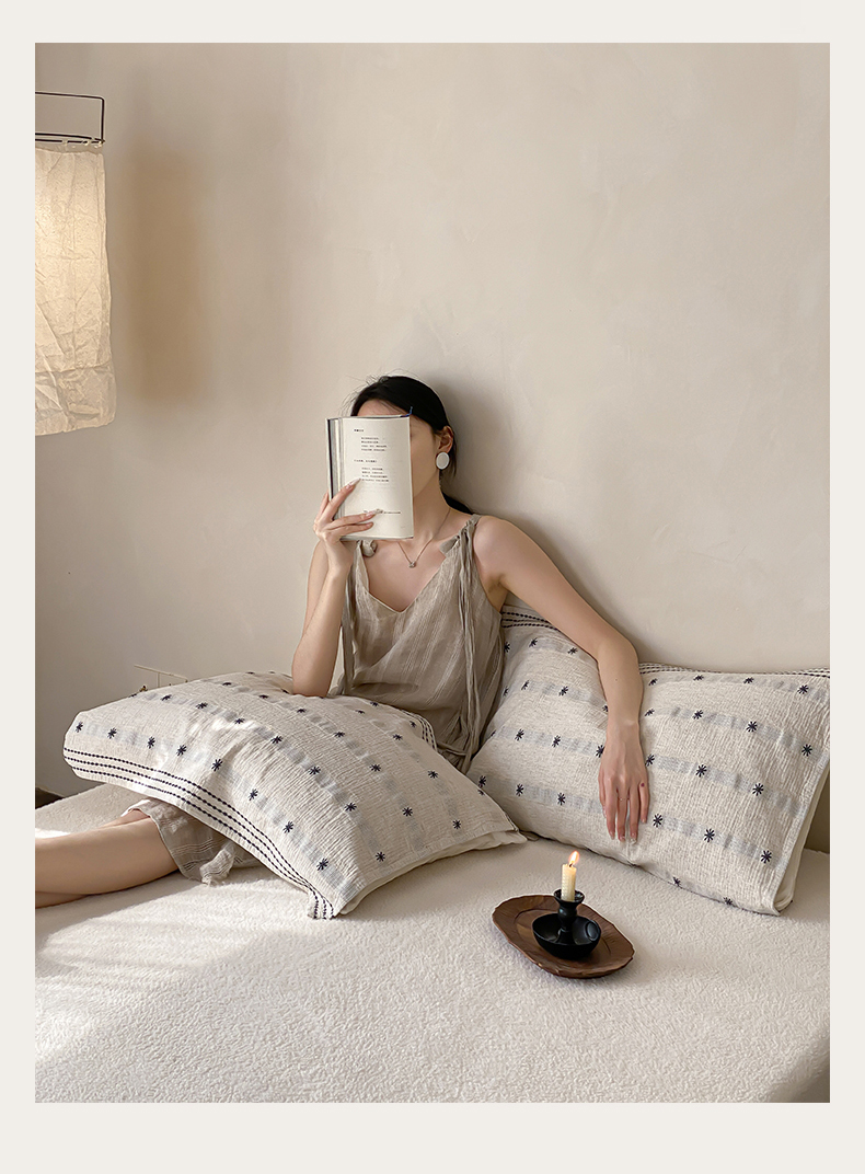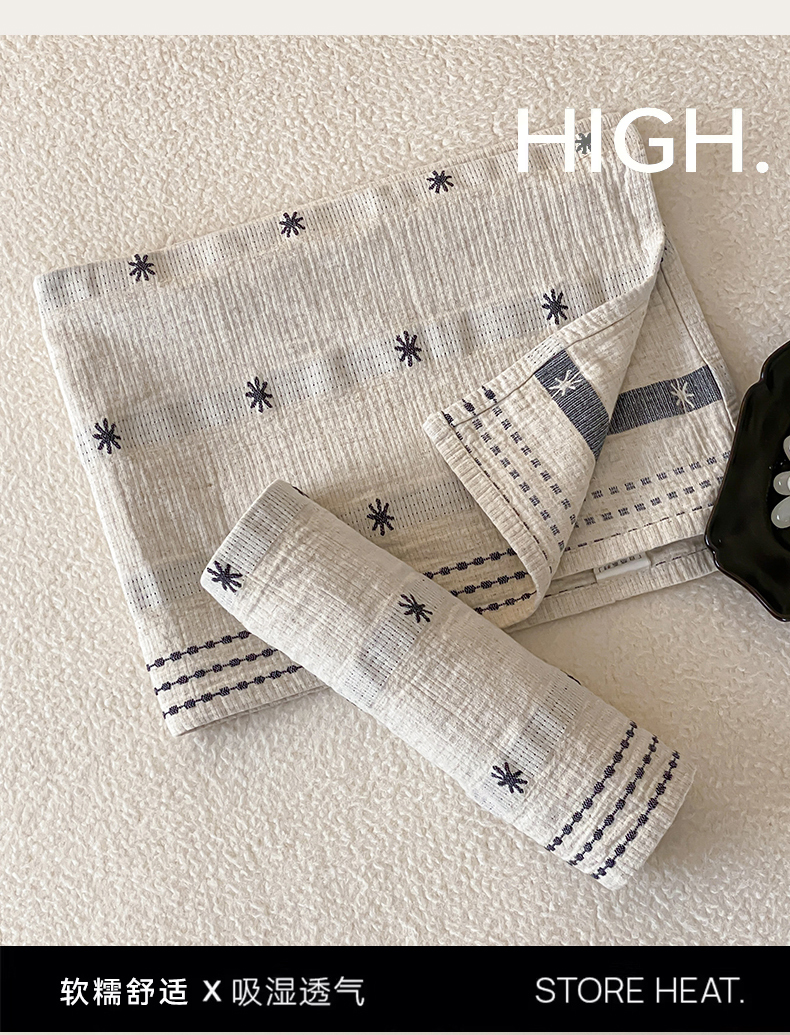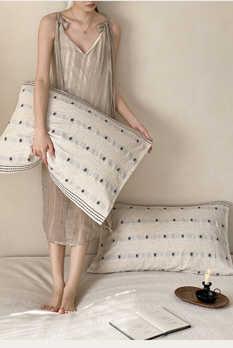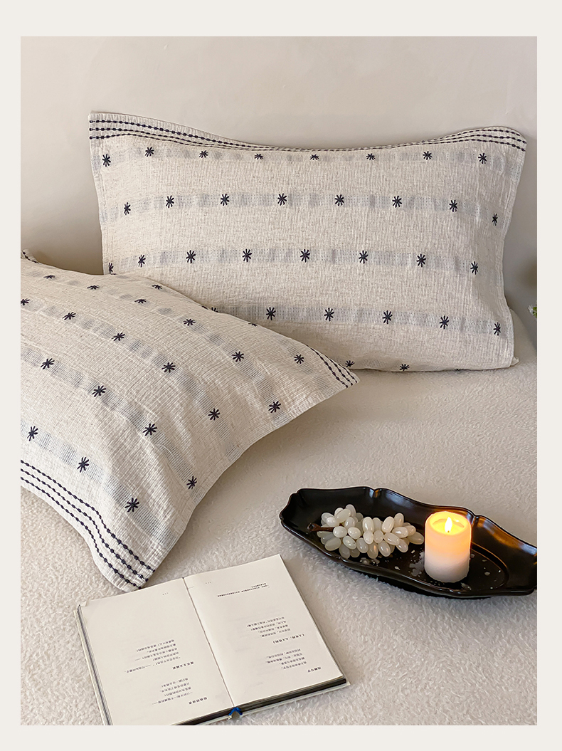 麻依 2026新款四层纱布亚麻枕巾棉麻 点点星
