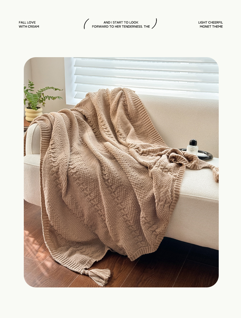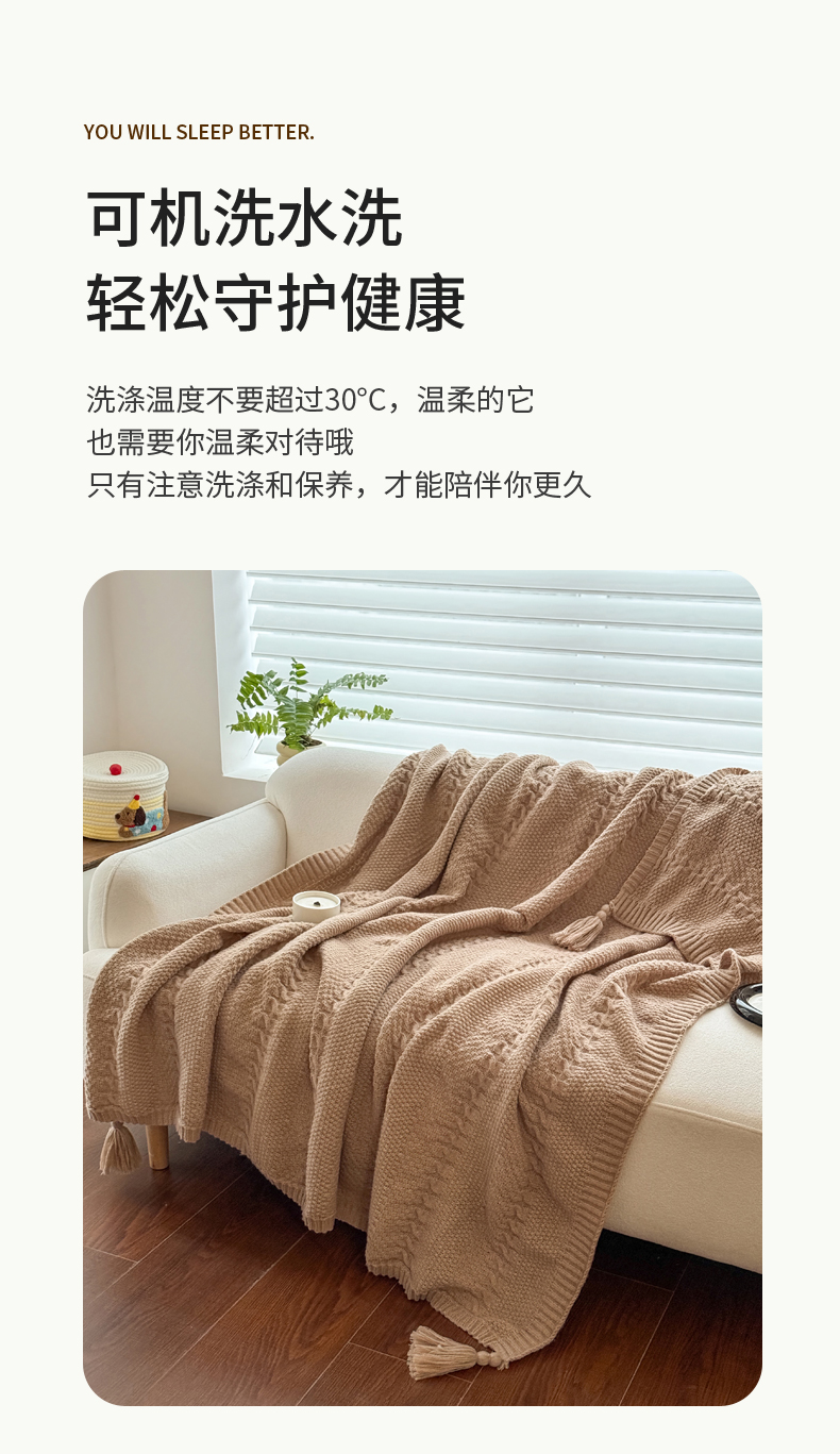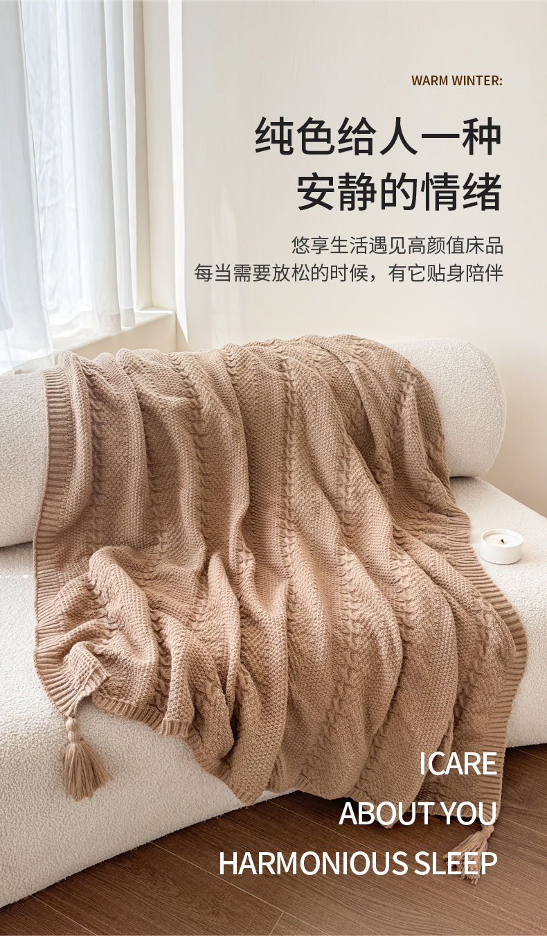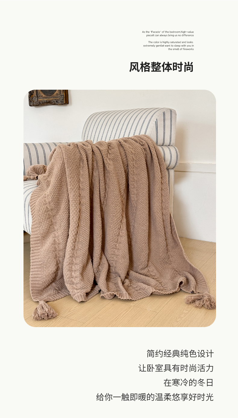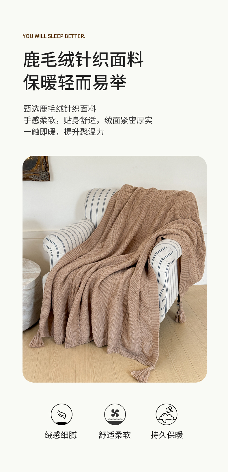 商品名称:丹本家纺 2026新款针织毛毯鹿毛绒纯色流苏航空休闲毯办公午睡盖毯多功能装饰毯 丁香咖