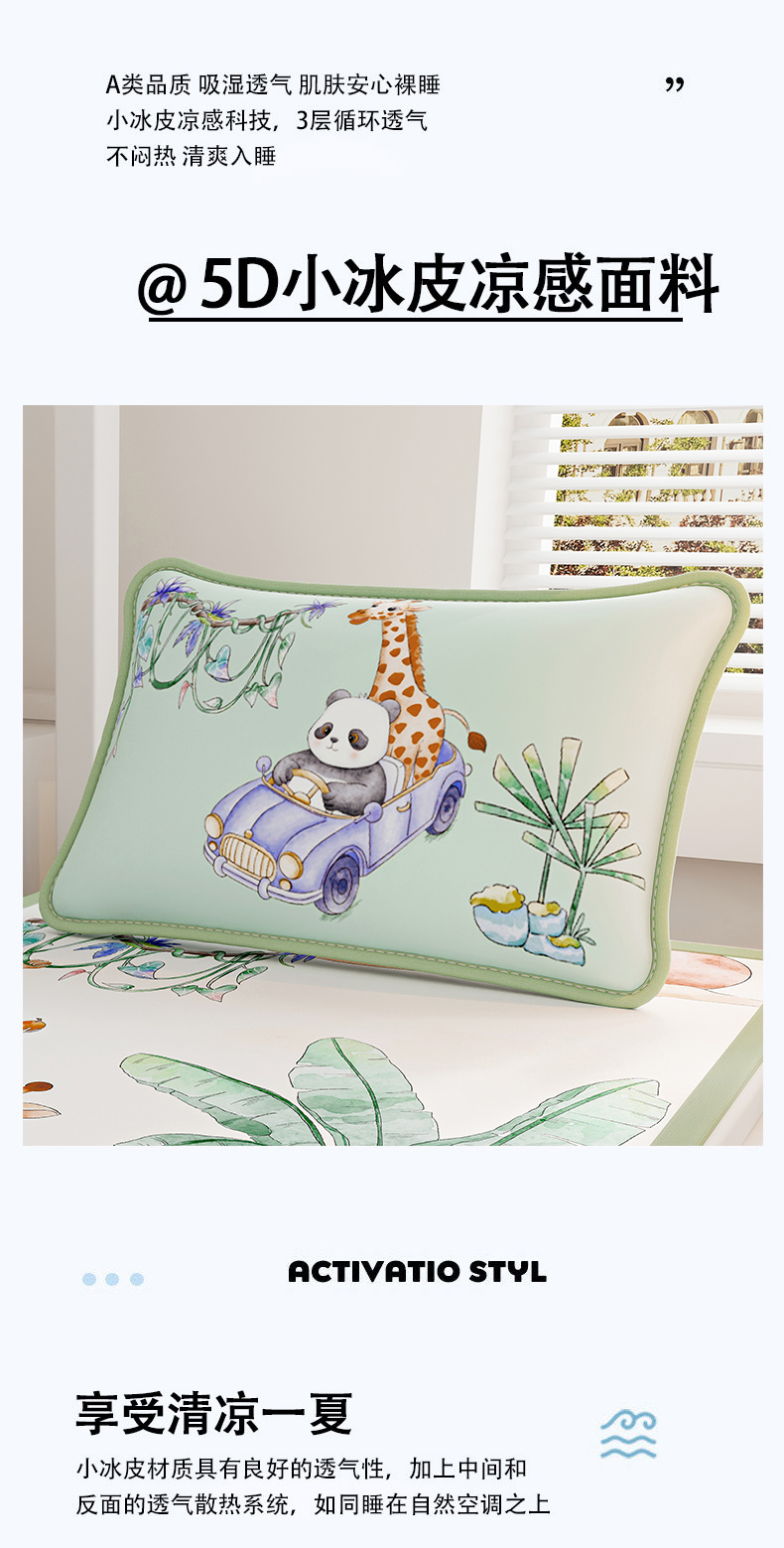 商品名称:家品罗兰 2026新款小冰皮卡通冰丝枕套 动物乐园