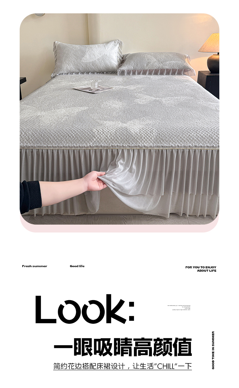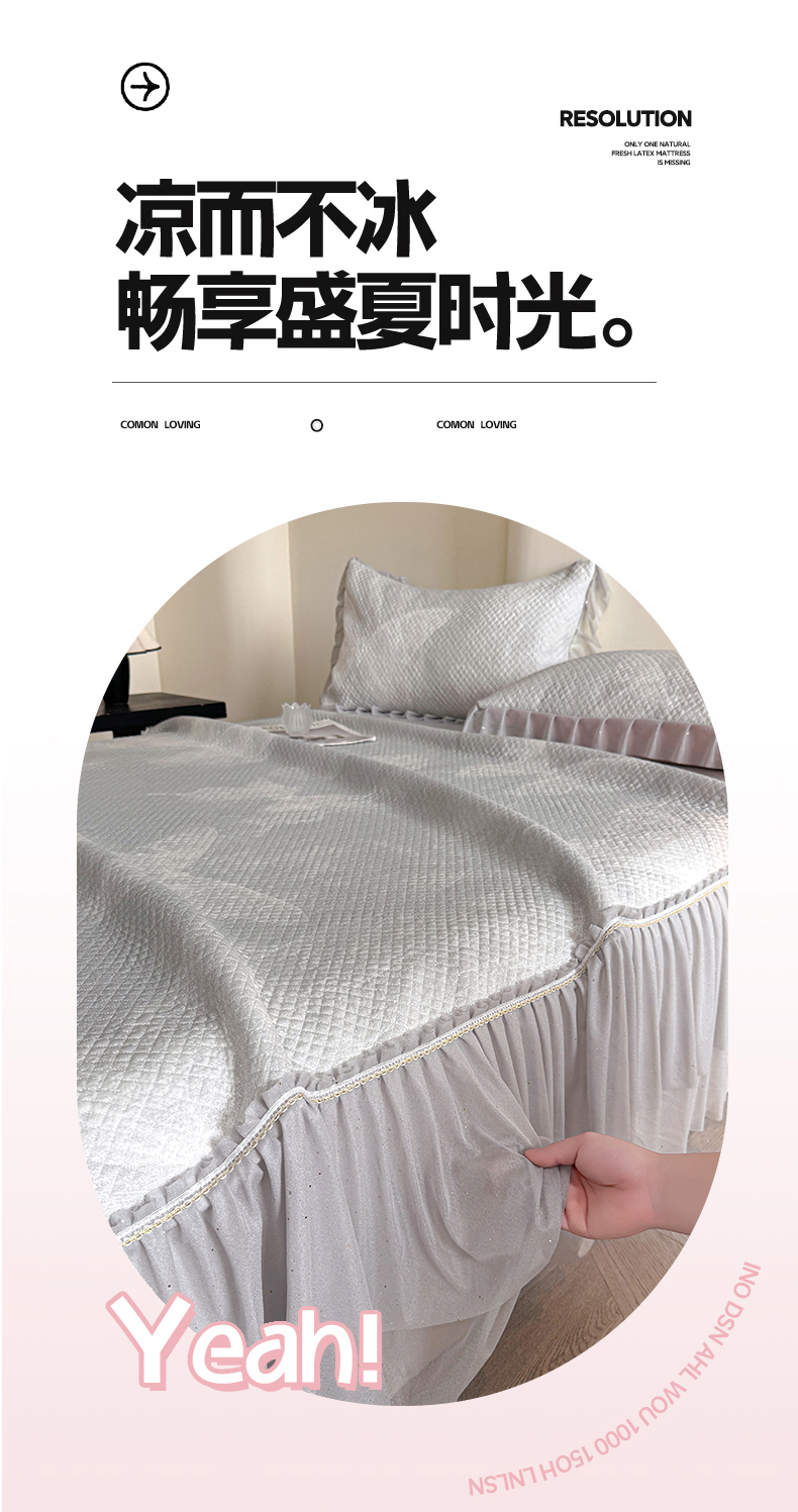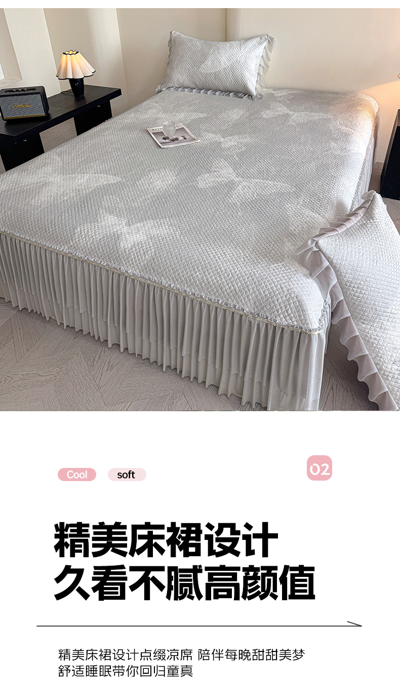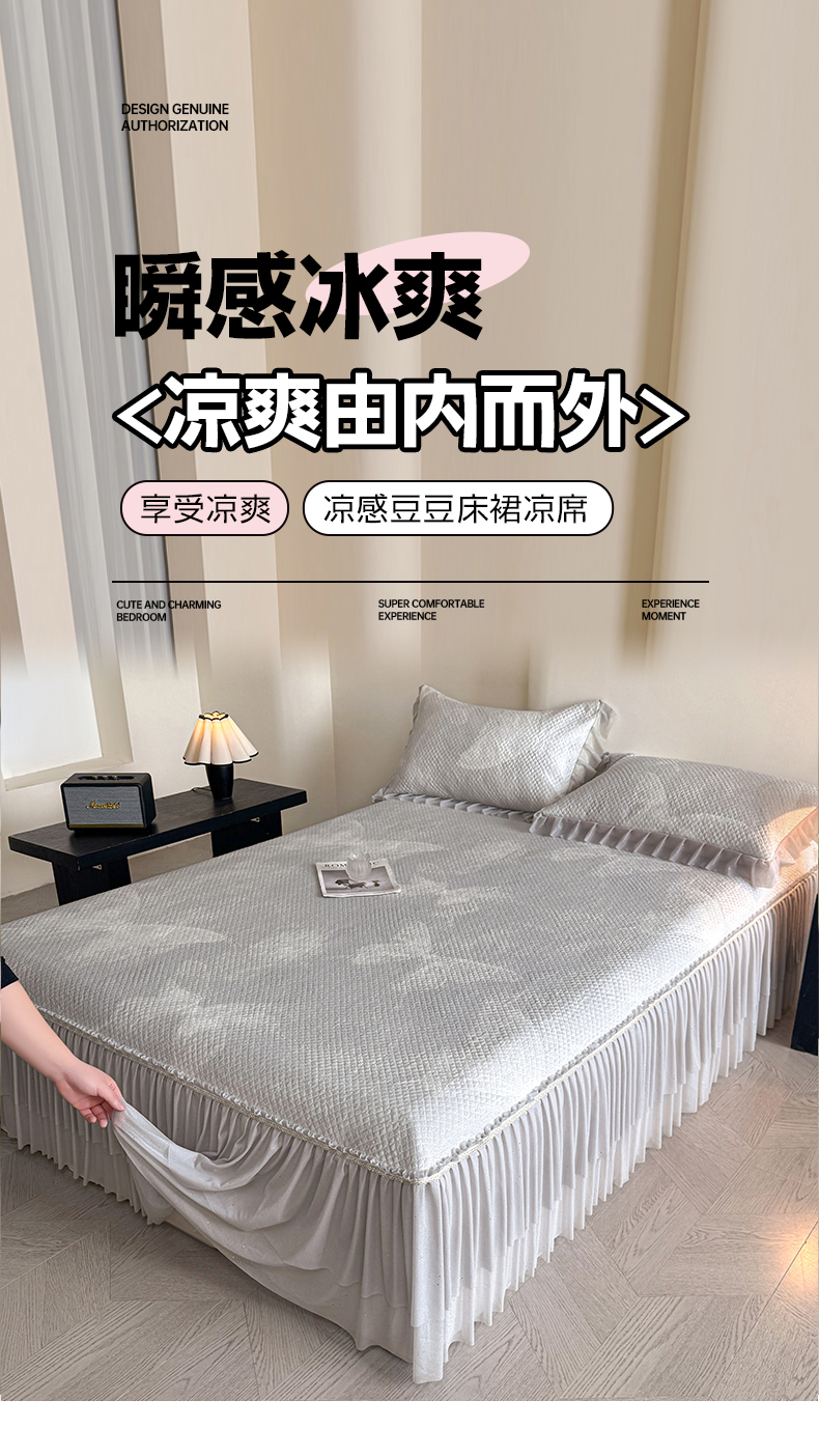 (总)诺梵家纺 2026新款冰豆豆PE高分子凉感印花床裙款凉席三件套【控价1.5米139 ;1.8米149;2.0米159】,简时光粉,小蛮腰粉,小蛮腰-蓝,小蛮腰灰,小蛮腰黄,简时光灰
