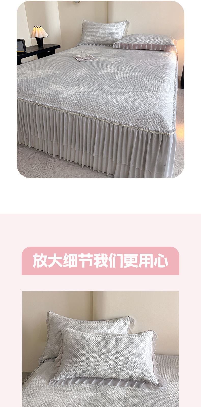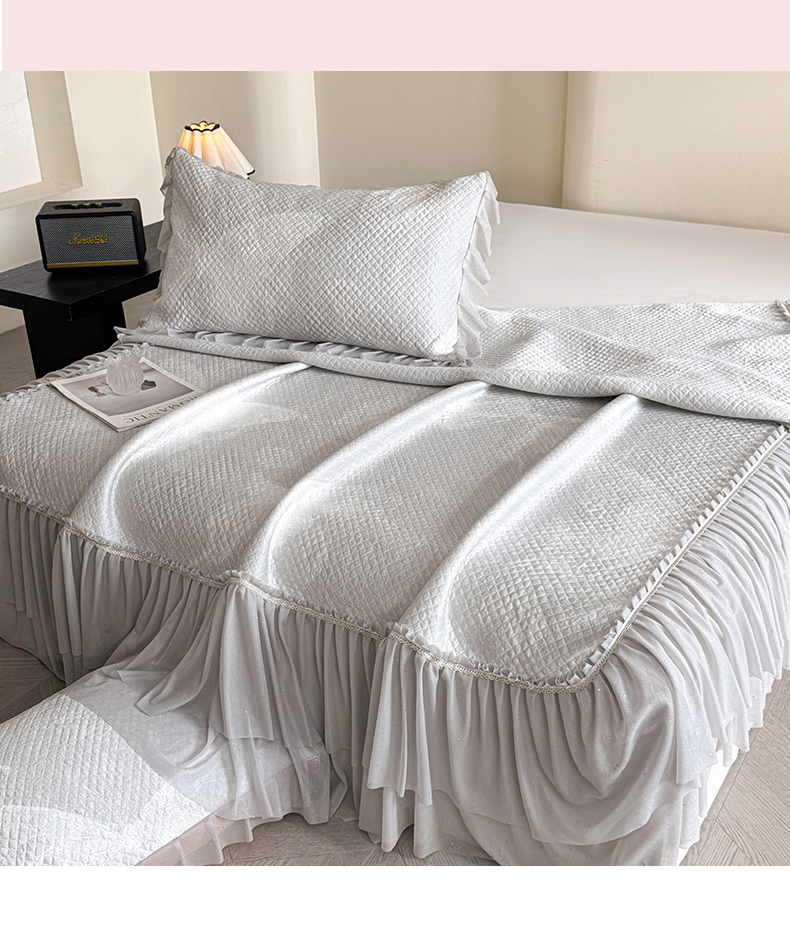 诺梵家纺 2026新款PE冰豆豆冰丝凉席床裙款-玫瑰系列 灰玫瑰,灰玫瑰
