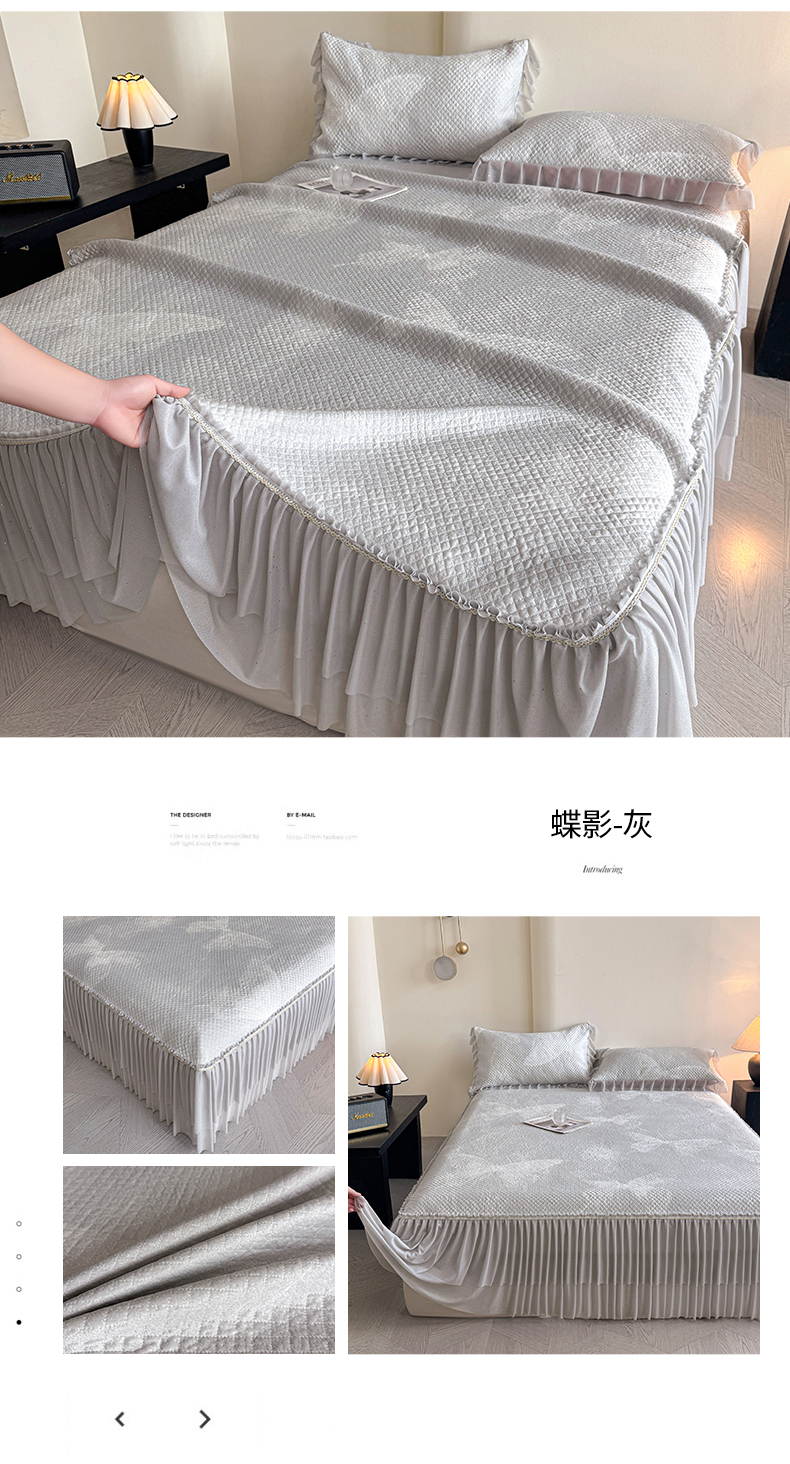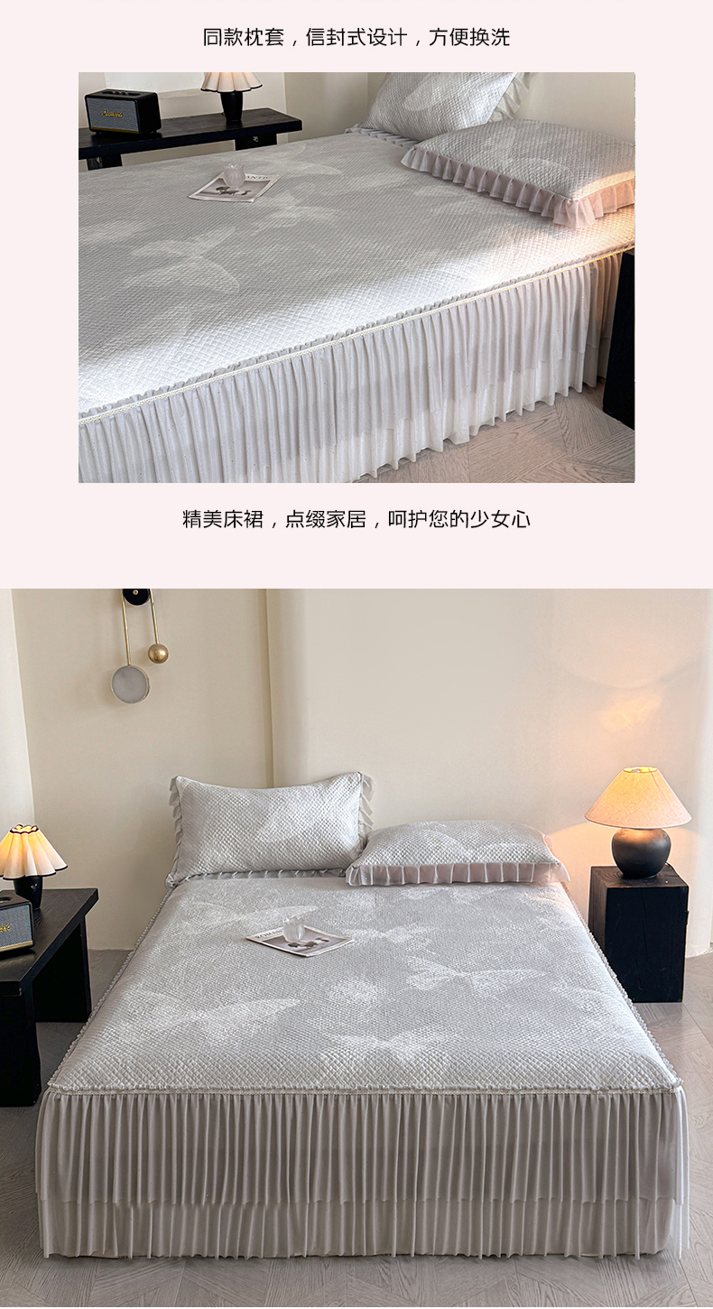 商品名称:诺梵家纺 2026新款冰豆豆PE高分子凉感双层床裙款凉席 蝶影-灰