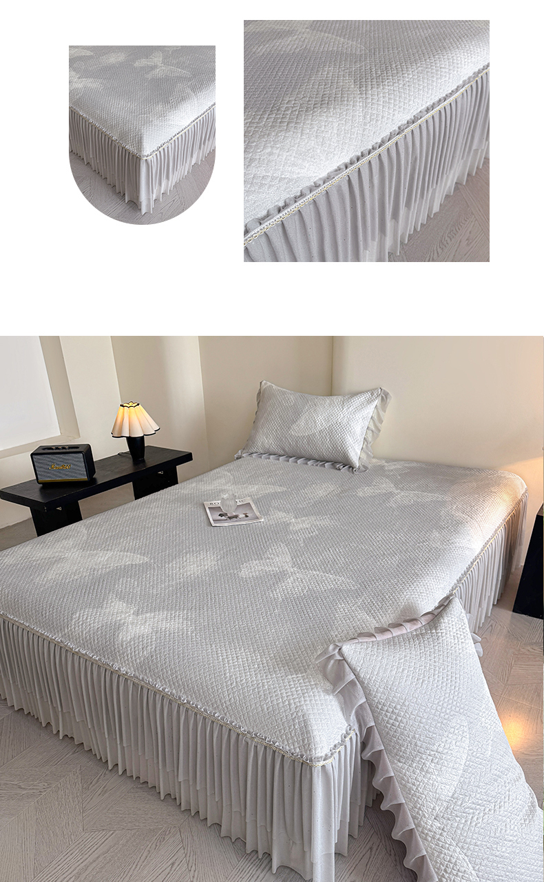 (总)诺梵家纺 2026新款冰豆豆PE高分子凉感双层床裙款凉席,蝶影-灰,蝶影-粉,蝶影-蓝,蝶影-绿