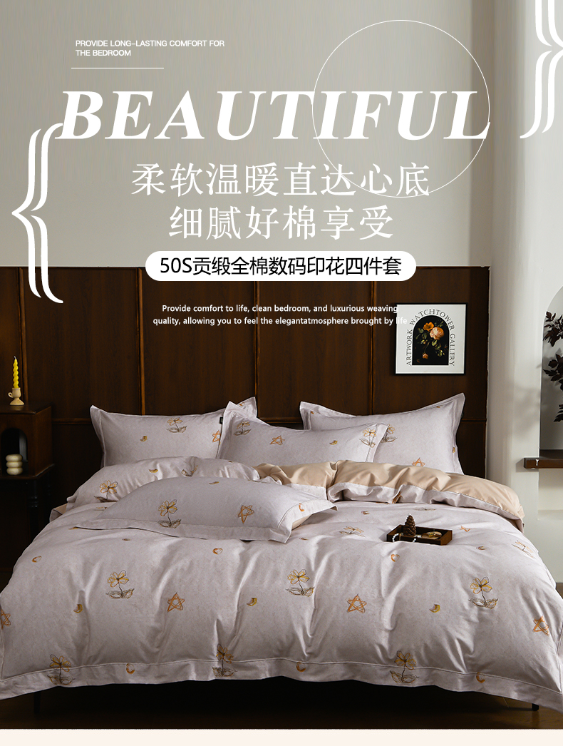 金昱纺 2026新款全棉50S长绒棉数码印花宽边埋绳款四件套(带精美礼盒包装) 花织软梦
