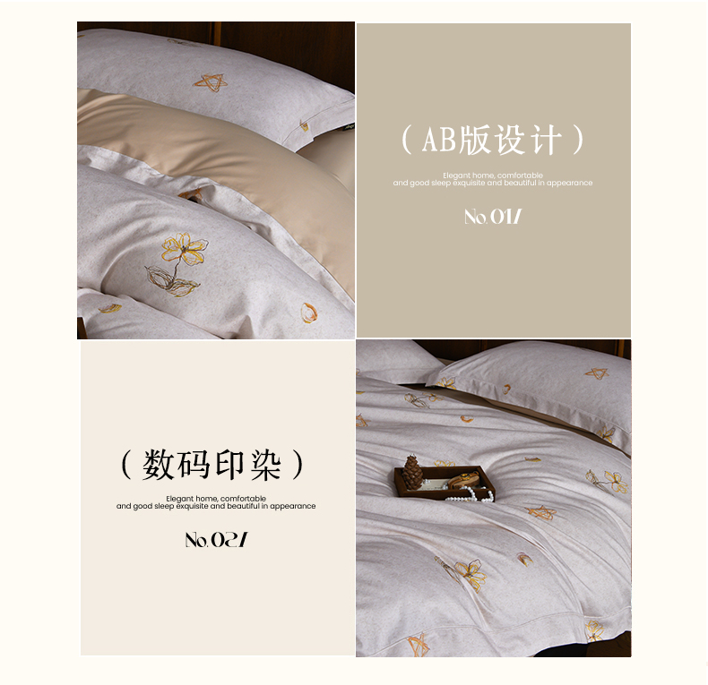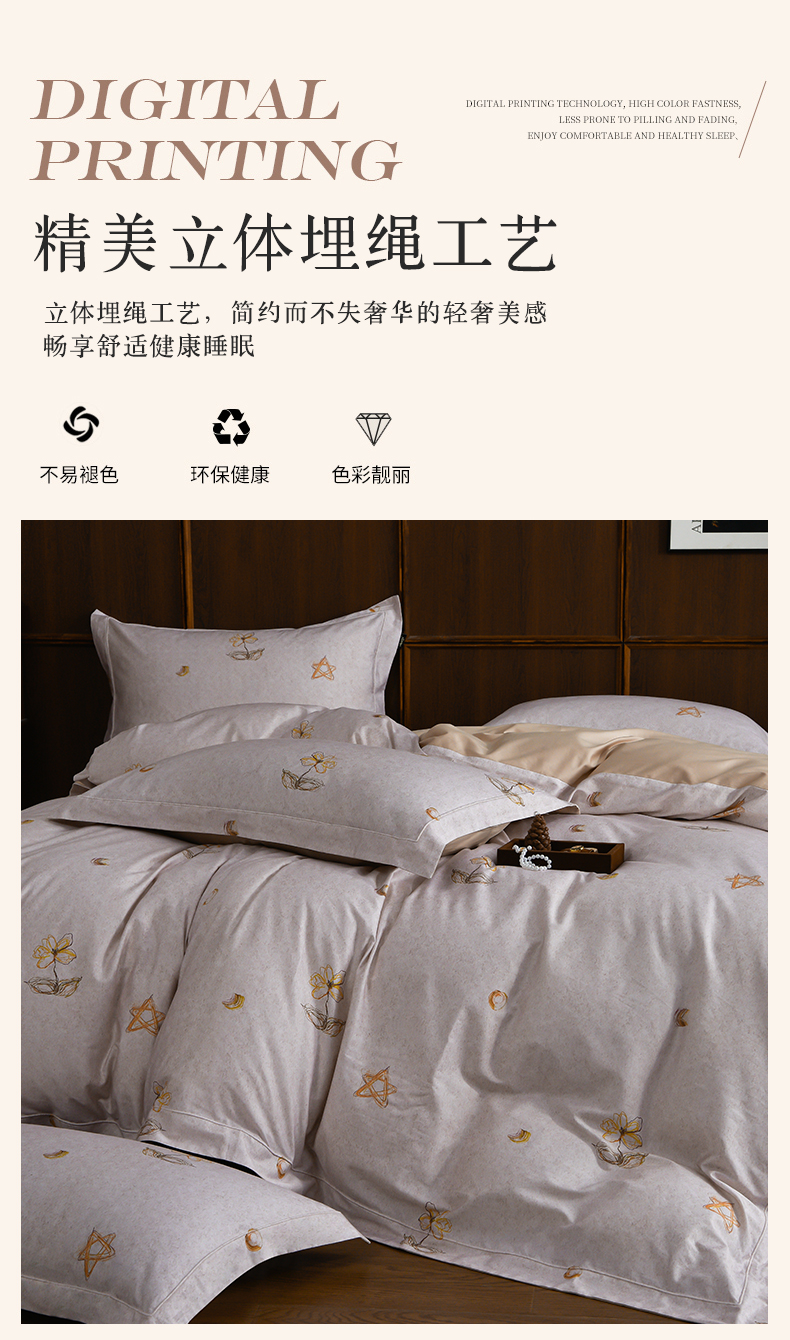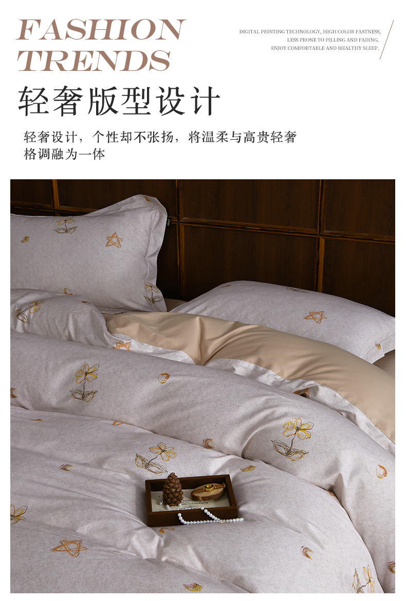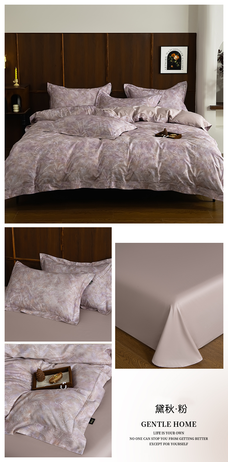 (总)金昱纺 2026新款全棉50S长绒棉数码印花宽边埋绳款四件套(带精美礼盒包装),叶栖-咖,黛秋-粉,花织软梦,摩卡-绿,甜梦花栖,榭风轻眠