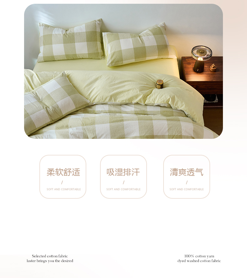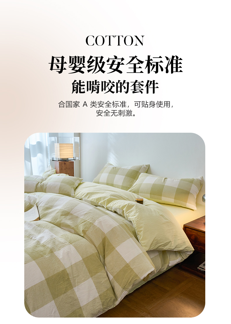当前位置: 91家纺网 > 商品网购 > 床品套件 > 四件套 > 全棉普通四件套 > 春皖家纺 2026春夏新款全棉纯棉水洗棉四件套 素雅-芳绿