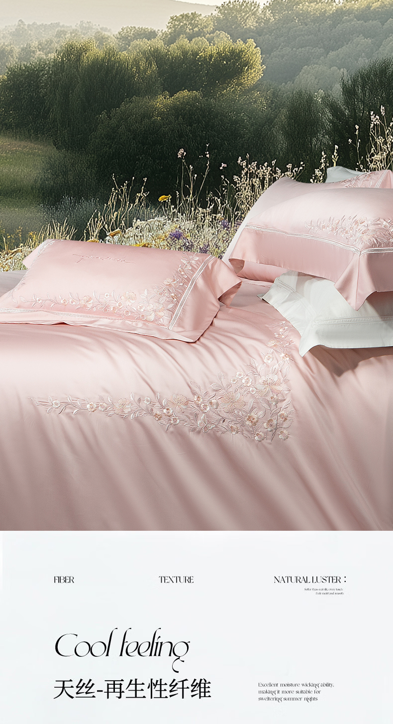 (总)诗黛尔 2026春夏新品天丝刺绣四件套若水伊人系列,若水伊人-淡雅紫,若水伊人-卡其色,若水伊人-落樱粉,若水伊人-绅士灰,若水伊人-水晶兰,若水伊人-香槟金