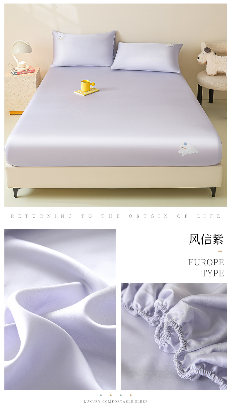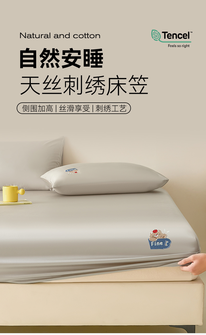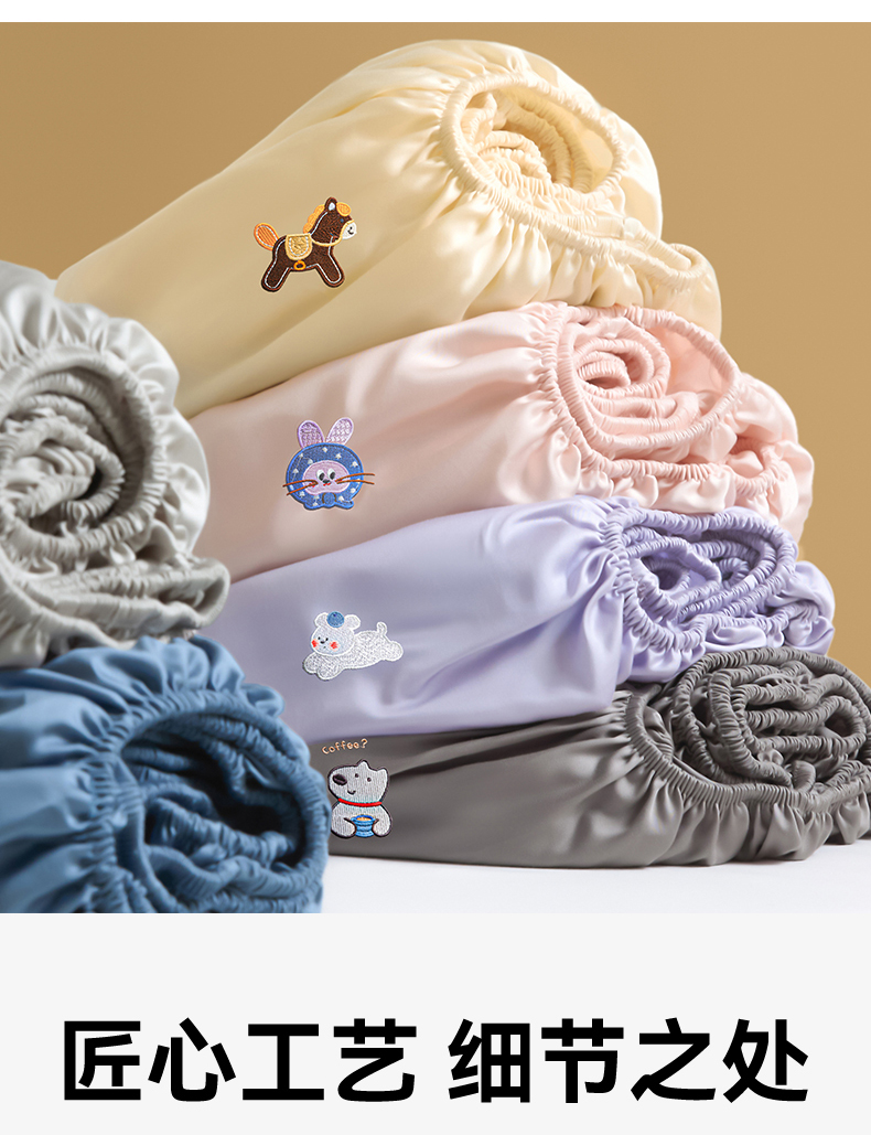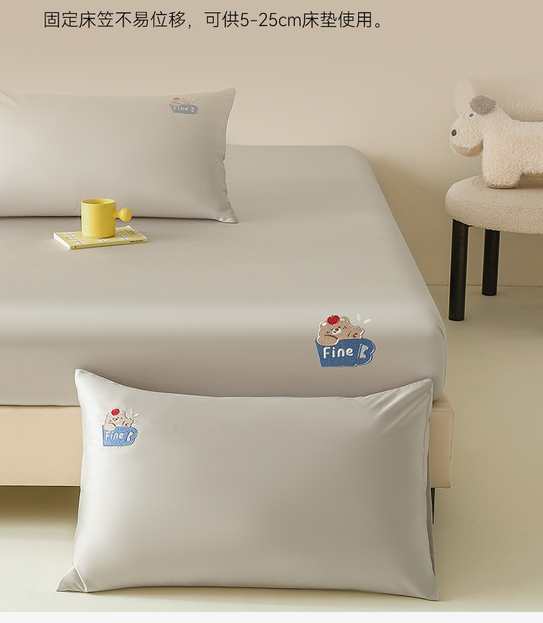 DC 2026新款莱赛尔天丝卡通刺绣单品床笠 冰川灰
