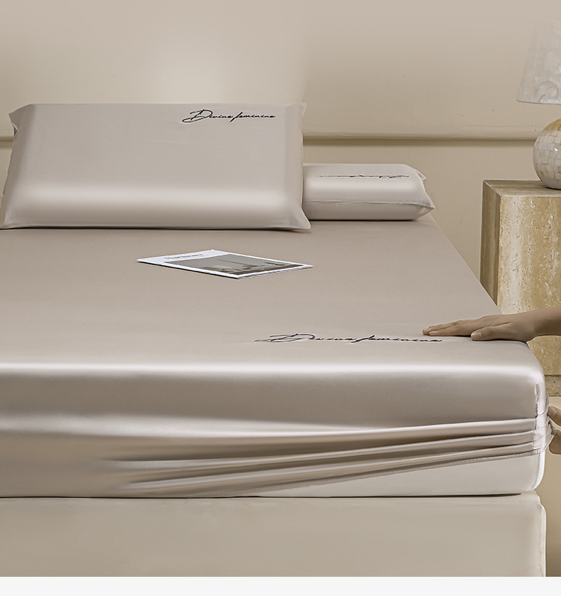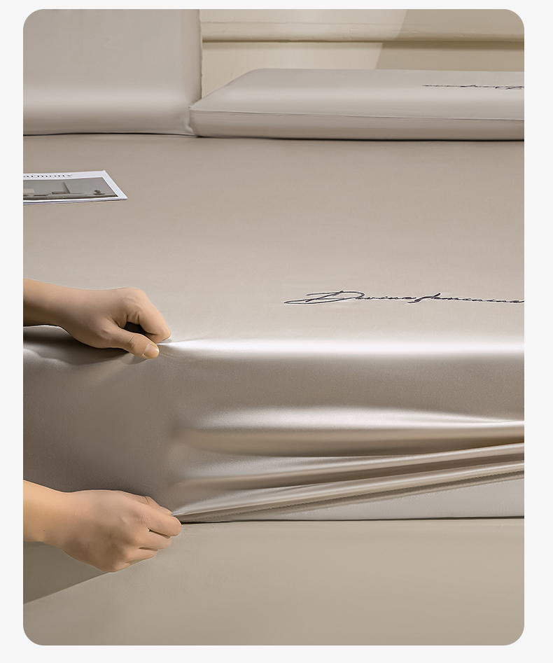 DC 2026新款莱赛尔天丝轻奢刺绣单品床笠 浅茶