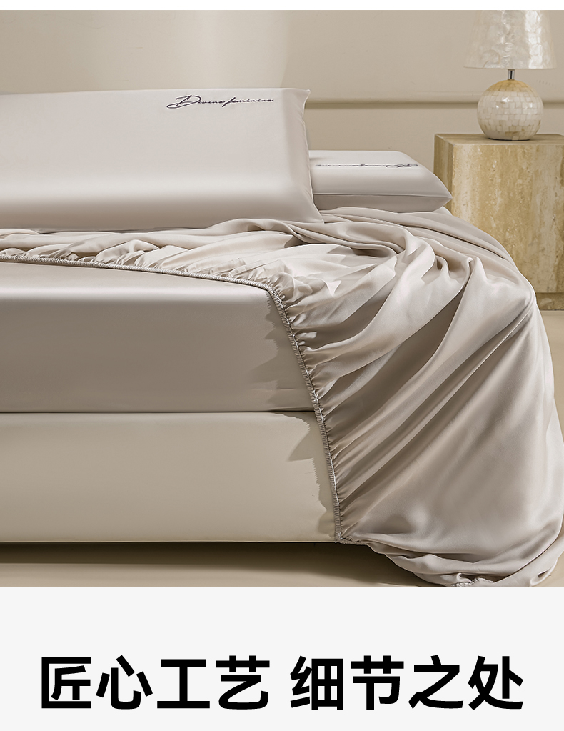 商品名称:DC 2026新款莱赛尔天丝轻奢刺绣单品床笠 浅茶