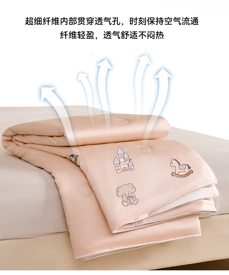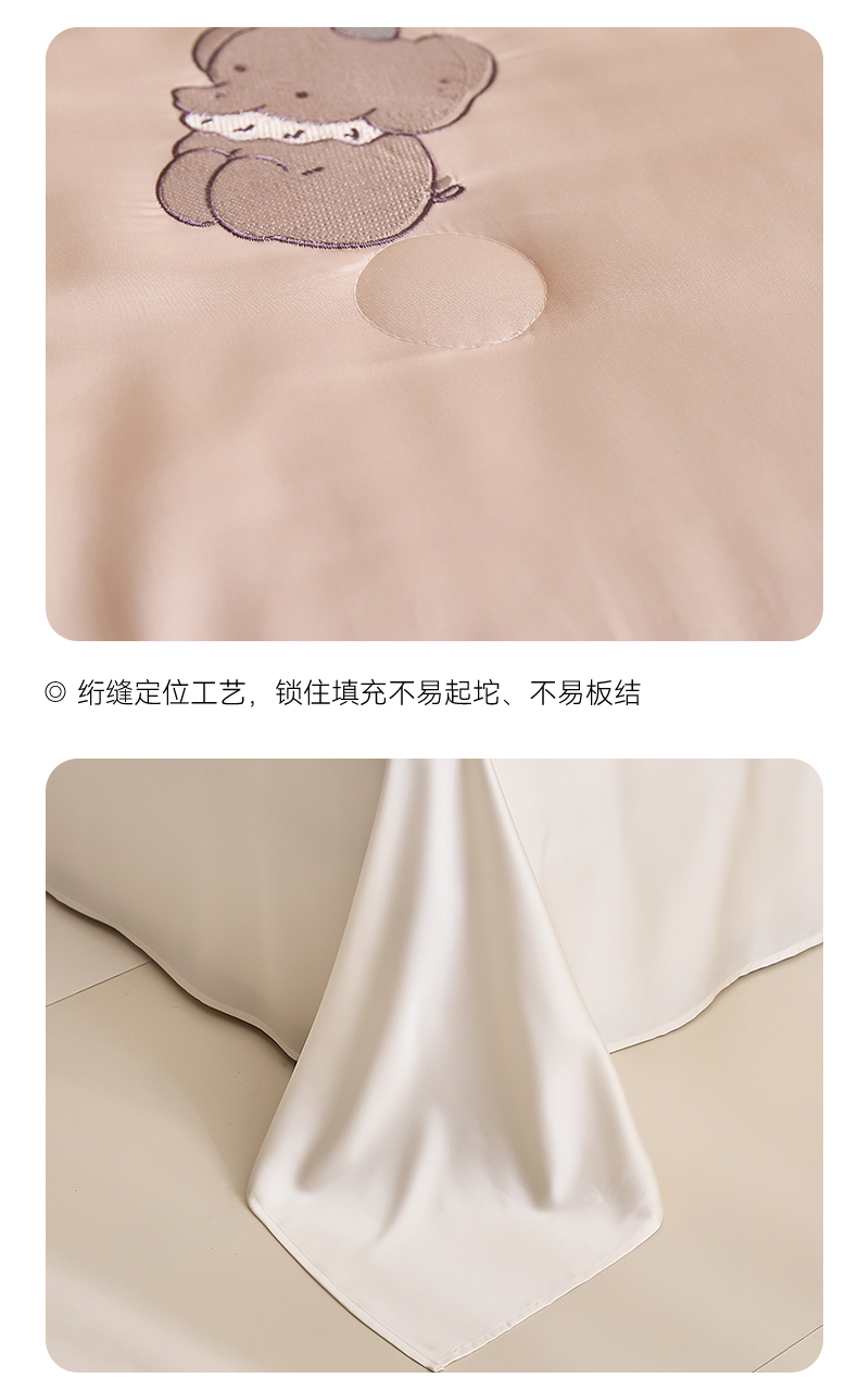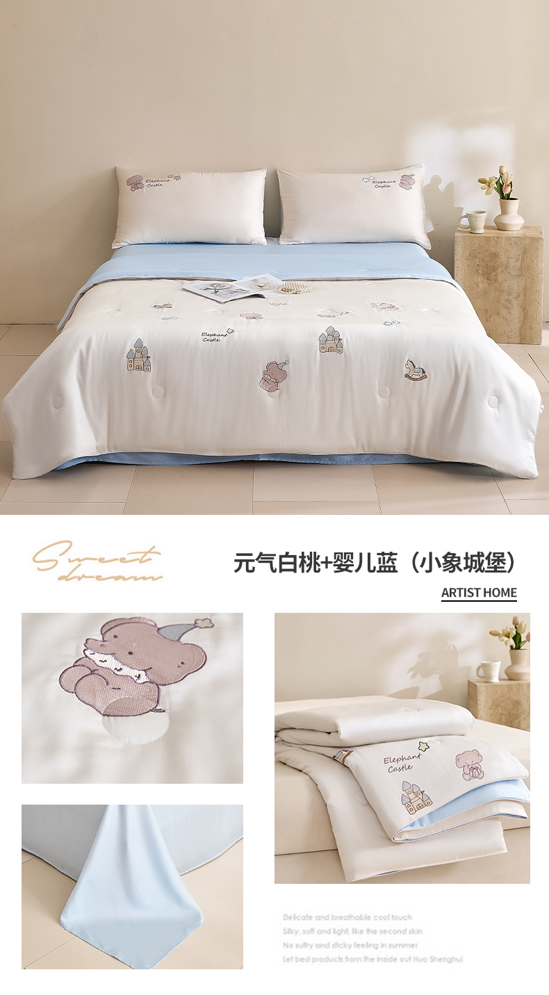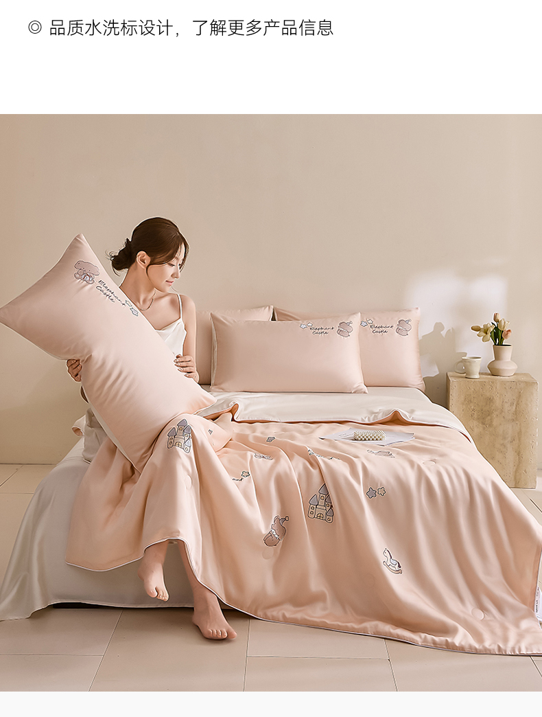 • 91家纺网 家纺一手货源 找家纺 DC 2026新款A类兰精天丝麻绳平绣系列夏被四件套 半熟蜜桃+元气白桃(小象城堡)