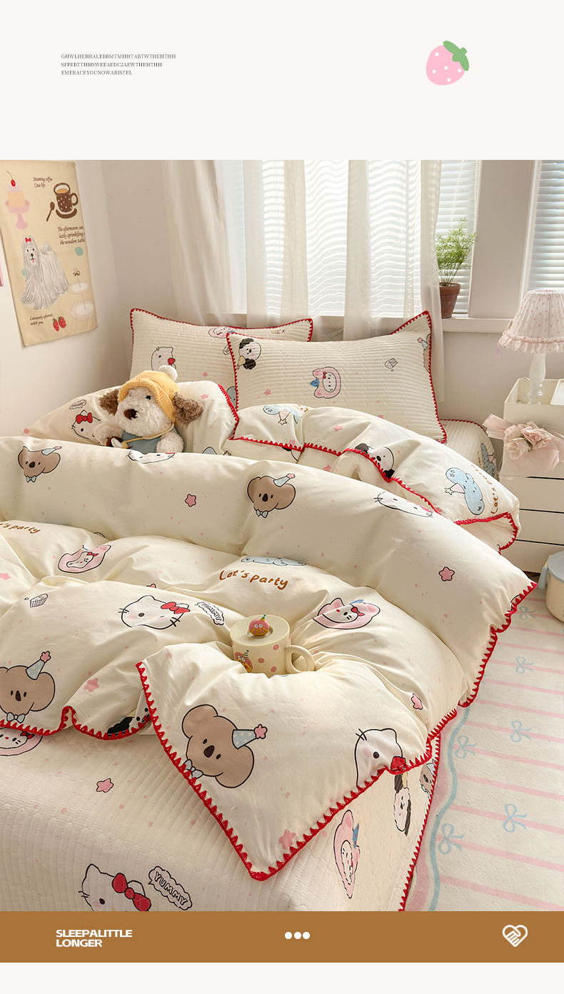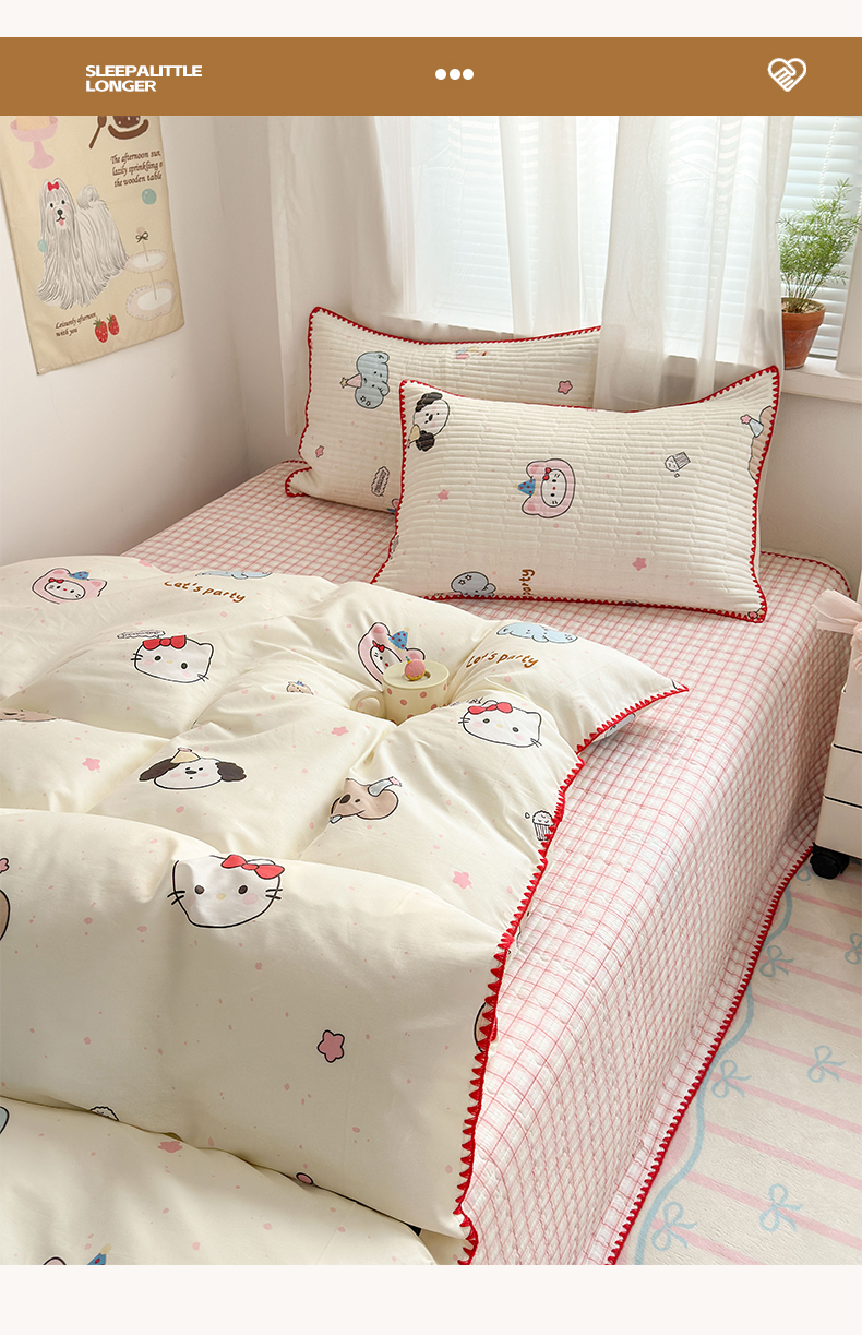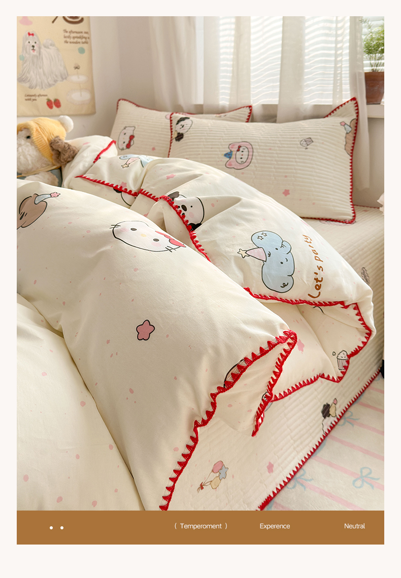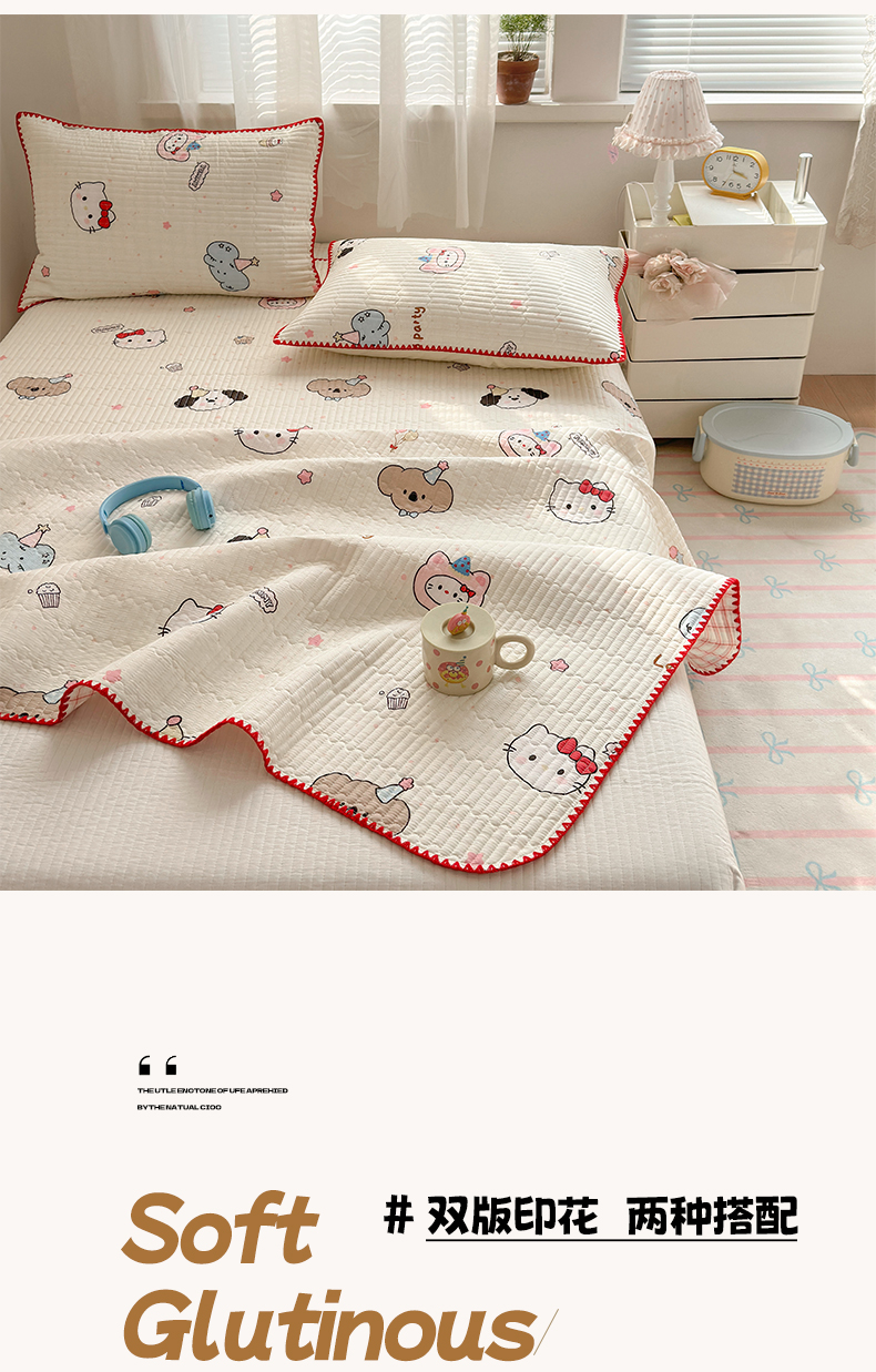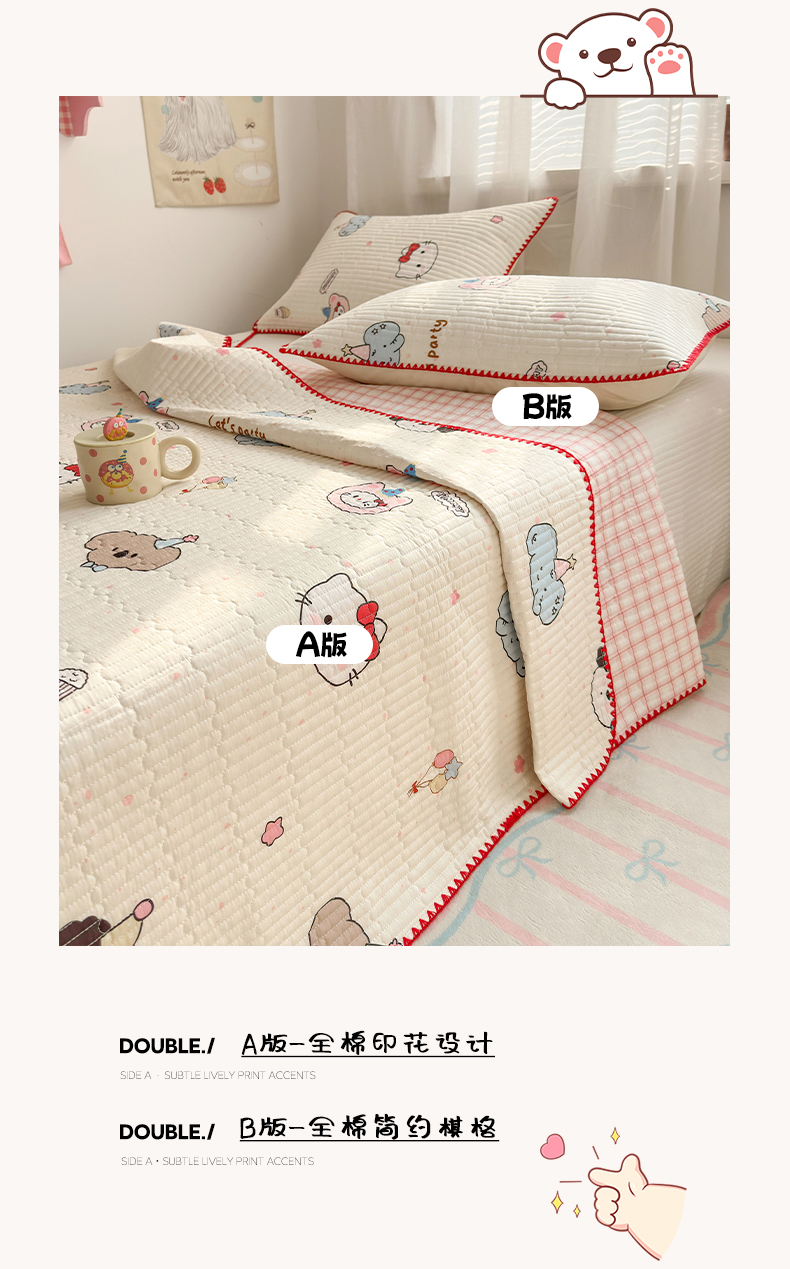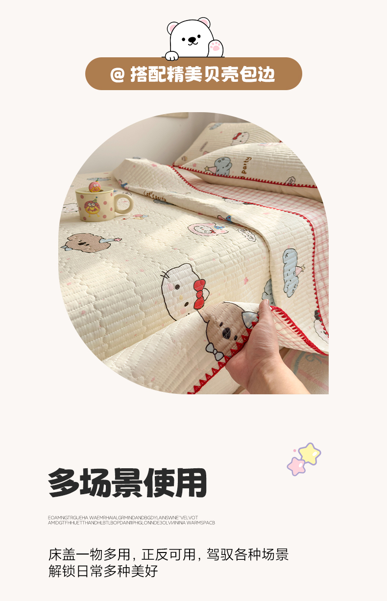 当前位置: 91家纺网 > 商品网购 > 床品套件 > 四件套 > 全棉普通四件套 > 妮可 2026新款贝壳边双面全棉床盖四件套 星星喵喵