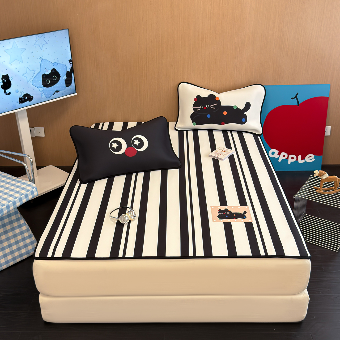懒猫家纺 2026新款大版卡通云感果冻床席床笠凉席 极简黑猫-床笠款